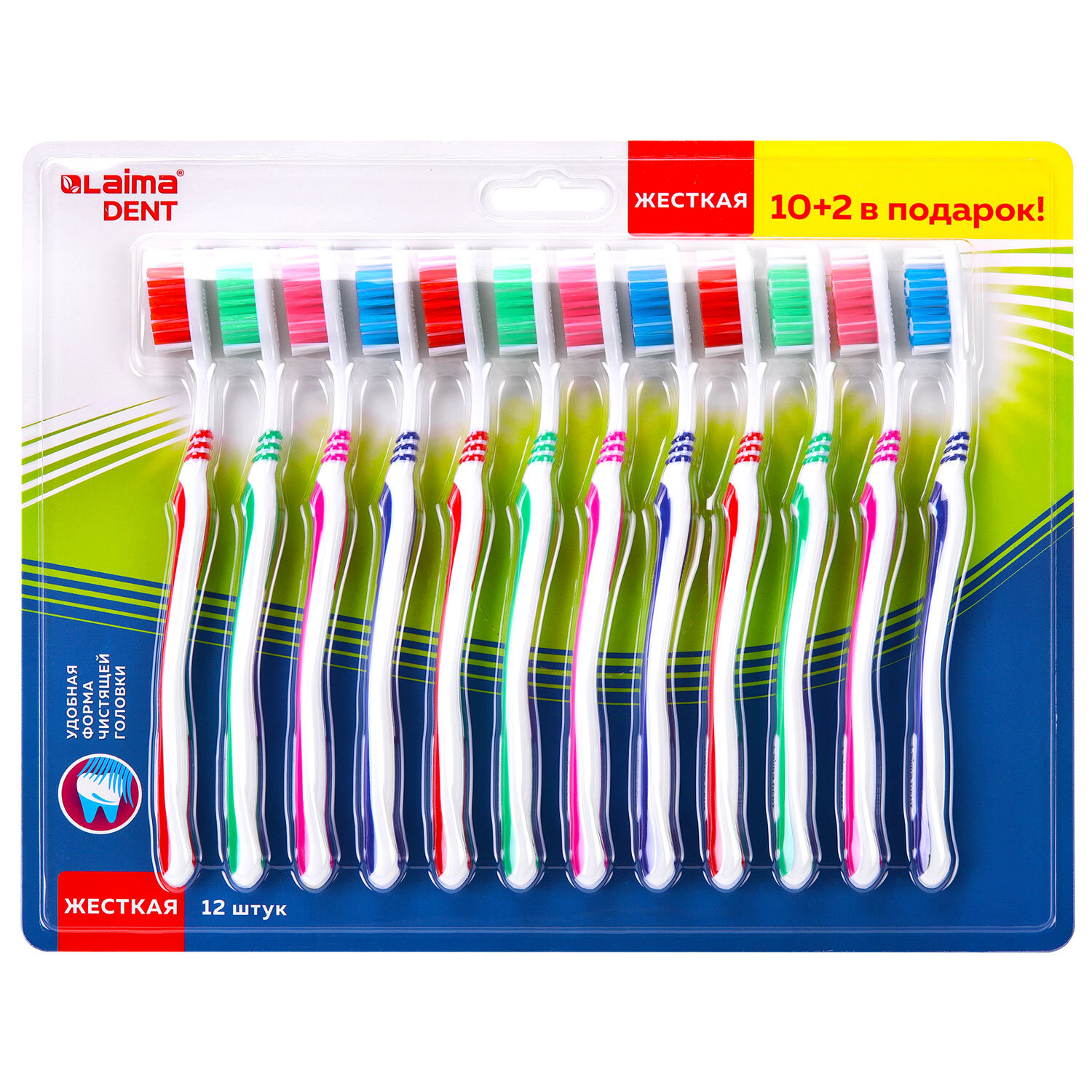 Зубная щетка жесткая WHITENING, КОМПЛЕКТ 12 шт. (10 + 2 в подарок), LAIMA DENT Код товара: 609690 266,05 ₽ Купить Производитель:LAIMA DENT Набор зубных щеток LAIMA DENT WHITENING – идеальный выбор для всей семьи! Обеспечивают качественную гигиену полости рта. Жесткая щетина обеспечивает максимальное очищение, эффективно удаляет налет и бактерии, предотвращая кариес и зубной камень Компактная головка щетки легко проникает в труднодоступные места. Удобная ручка для комфортного захвата. Важно! Перед использованием новую зубную щетку промыть в теплой воде (не более 60 °С) с мылом. Более высокая температура воды может деформировать материал щетки и её ручки. Во время использования рекомендуется хранить щетку в вертикальном положении, щетиной вверх. Рекомендуемый срок службы зубной щетки – 2-3 месяца.Производство: КитайТип товара: зубная щеткаЖесткость щетины: жесткаяПрорезиненная вставка на рукоятке : даКоличество в упаковке: 12 шт.Особенности щетки: для всей семьиСерия: DENT SETВозрастная группа: взрослаяВес: 232 грРазмер упаковки: 1.7 × 30 × 23.9 смОбъём: 0.0015 м3Промежуточная упаковка: 12 штТранспортная упаковка: 48 штШтрих-код: 4606224455044 Сертификат-1.jpg Сертификат-2.jpg
