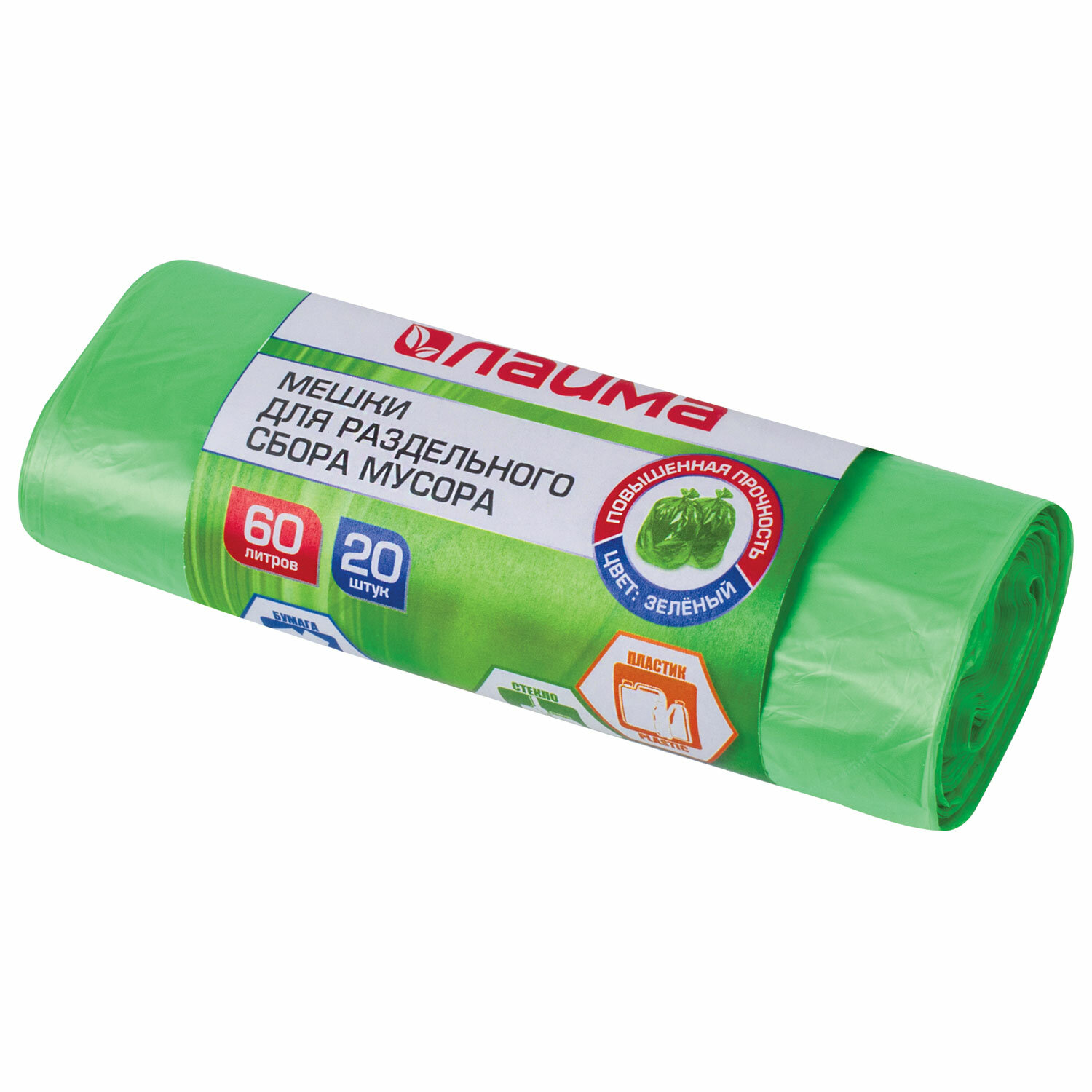 Мешки для раздельного сбора мусора 60 л зеленые в рулоне 20 шт., ПНД 10 мкм, 58х68 см, LAIMA, 606704 Код товара: 606704 130,68 ₽ Купить Производитель:LAIMA Цветные мешки для мусора ЛАЙМА в рулоне предназначены для сбора, хранения, транспортировки и утилизации бытовых отходов в случае необходимости их сортировки по типам. Цветовая кодировка носит рекомендательный характер. Широко используются в офисах, дома, в строительной, медицинской сфере, супермаркетах или на улице, в специальных урнах для мусора. Изготовлены из полиэтилена низкого давления (ПНД) плотностью 10 микрон и имеют объем 60 литров. Поставляются в рулоне по 20 штук. Размер мешка - 58х68 см (±5%). Преимуществами данных мешков для мусора являются большой объем и высокая грузоподъемность.Производство: РоссияОбъем: 60 лЦвет: зеленыйПрочность: стандартнаяКоличество в комплекте: 20 шт.Толщина полиэтилена: 10 мкмМатериал: ПНД раздельный сборТип дна: звездаТип упаковки: рулонСоответствует требованиям ГОСТа: ГОСТ 12302-2013Ширина: 58 смДлина: 68 смВес: 167 грРазмер упаковки: 3.6 × 15.7 × 5.5 смОбъём: 0.0004 м3Промежуточная упаковка: 40 штТранспортная упаковка: 40 штШтрих-код: 4606224276847 Файлы Приложение-1.pdf Приложение-2.pdf Сертификат-1.jpg Сертификат-2.jpg Сертификат-3.jpg