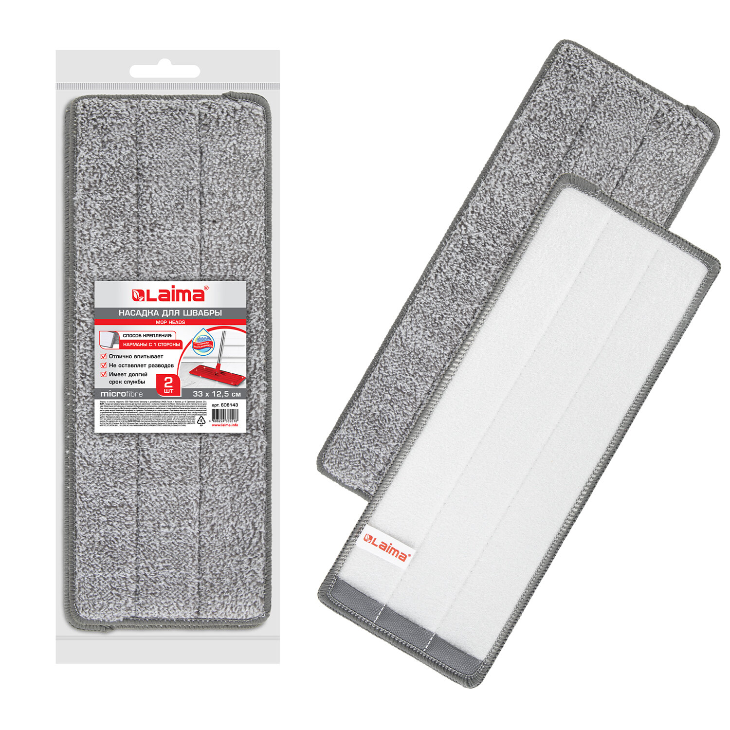 Насадки МОП для швабры (кармашки с 1-й стороны) КОМПЛЕКТ 2 шт., микрофибра, 33х12,5 см, LAIMA Код товара: 608143 288,28 ₽ Купить Производитель:LAIMA Плоская насадка МОП для швабры хорошо впитывает воду и не оставляет разводов при мытье полов и других покрытий. С такой насадкой уборка будет быстрой и комфортной. Насадка подходит для типовых швабр (карманы с одной стороны). Сменная насадка выполнена из микрофибры. Размер насадки – 33х12,5 см. Подходит для многих швабр (наборы для уборки) с системой липучек и одностороннего крепления (кармашки с одной стороны МОПа). Насадка из микроволокна обладает несколькими важными достоинствами: 1. Микроволокно в сухом виде в процессе протирания поверхности электризуется и притягивает к себе мельчайшие частицы пыли, а не разгоняет их по комнате. 2. При влажной уборке, благодаря способности микрофибрового волокна поглощать влагу в 7 раз больше самой ткани, насадка хорошо впитывает и удерживает влагу, забирает в структуру ткани любые загрязнения, не оставляет разводов. 3. Крученые петли работают как деликатный абразив и усиливают впитывающие свойства микрофибры. Использование насадки LAIMA позволяет очистить любые поверхности от пыли и грязи без использования химических средств.Производство: КитайТип насадки: плоская насадка для мини наборовМатериал: микрофибраКоличество в комплекте: 2 шт.Крепление насадки: кармашки с одной стороны + липучкаДлина: 33 смШирина: 12.5 смМаксимальный объем впитывания: 300 млДлина ворса: 0.7 смЦвет: серыйВес: 20 гРазмер упаковки: 2.2 × 34.8 × 14.2 смОбъём: 0.0011 м3Промежуточная упаковка: 36 штТранспортная упаковка: 36 штШтрих-код: 4606224369518 Файлы Сертификат-1.jpg Сертификат-2.jpg Сертификат-3.jpg Сертификат-4.jpg Сертификат-5.jpg Сертификат-6.jpg Сертификат-7.jpg Сертификат-8.jpg Сертификат-9.jpg Сертификат-10.jpg Сертификат-11.jpg Сертификат-12.jpg Сертификат-13.jpg Сертификат-14.jpg Сертификат-15.jpg Сертификат-16.jpg Сертификат-17.jpg Сертификат-18.jpg Сертификат-19.jpg Сертификат-20.jpg Сертификат-21.jpg Сертификат-22.jpg Сертификат-23.jpg Сертификат-24.jpg Сертификат-25.jpg Сертификат-26.jpg