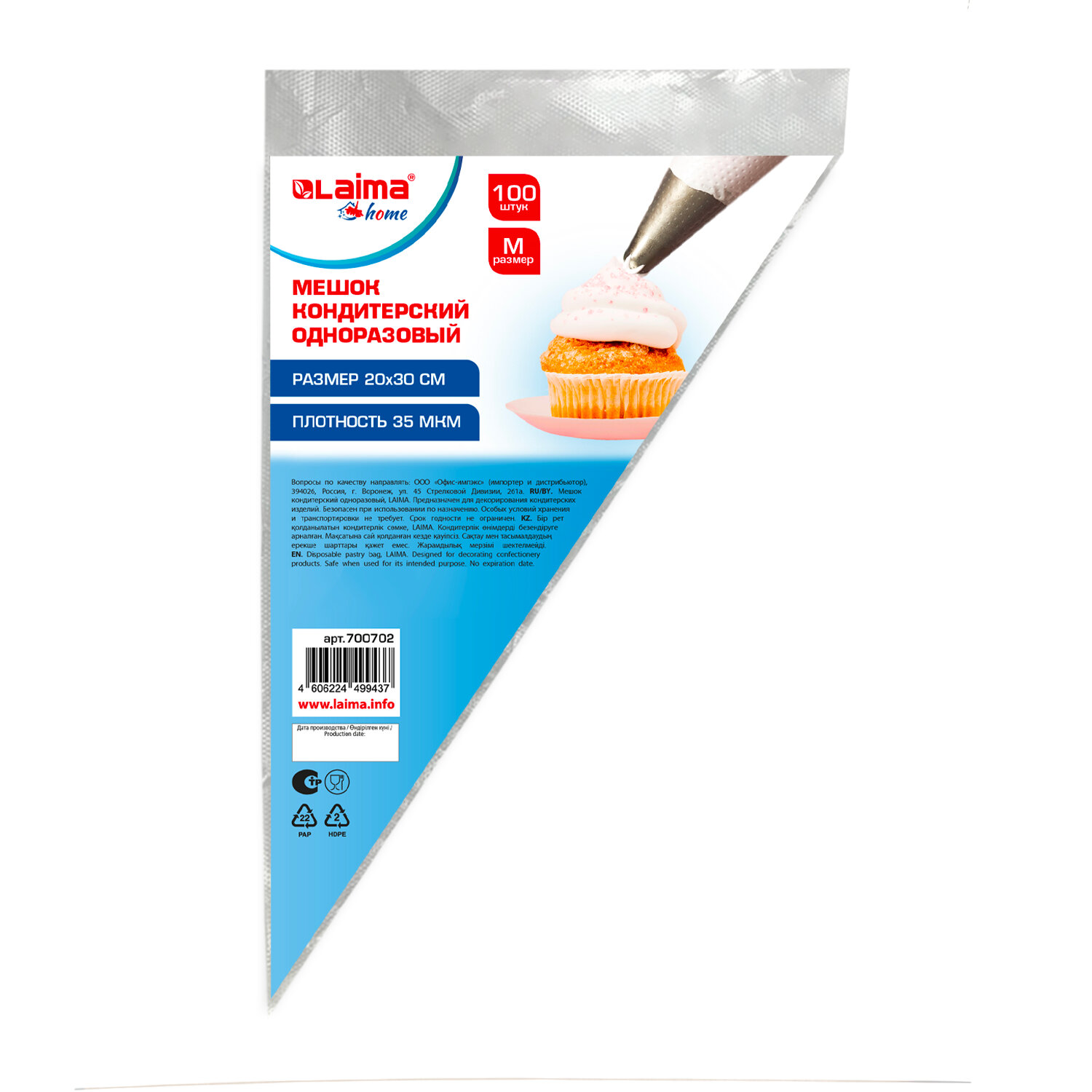 Мешок кондитерский одноразовый 20х30 см, размер M, КОМПЛЕКТ 100 штук, 35 мкм, LAIMA Home Код товара: 700702 185,62 ₽ Купить Производитель:LAIMA Кондитерские мешки LAIMA Home – ваш ключ к идеальному декору: украшайте торты, капкейки и другие десерты, как настоящий профессионал. Кондитерские мешки удобны в использовании, прочны и идеально подходят как для кремов, так и для глазури. Кондитерские мешки LAIMA Home сделают вид вашего десерта безупречным. Имеют прочную и гибкую структуру (не рвутся и не деформируются при нажатии), эргономичную форму, оптимальный размер и противоскользящую структуру для комфортного захвата. Подходят для насадок любого типа, а также могут быть использованы без них. Размер мешка: М (20х30х36 см). Объем: 360 мл. Количество в комплекте: 100 штук.Производство: КитайТип товара: мешок кондитерскийМатериал: полиэтиленТолщина: 35 мкмКоличество в комплекте: 100 шт.Одноразовый: даРазмер: 20х30 смЦвет: прозрачныйВес: 182 грРазмер упаковки: 1.4 × 30.4 × 21.9 смОбъём: 0.0004 м3Промежуточная упаковка: 200 штТранспортная упаковка: 200 штШтрих-код: 4606224499437 Сертификат-1.jpg Сертификат-2.jpg