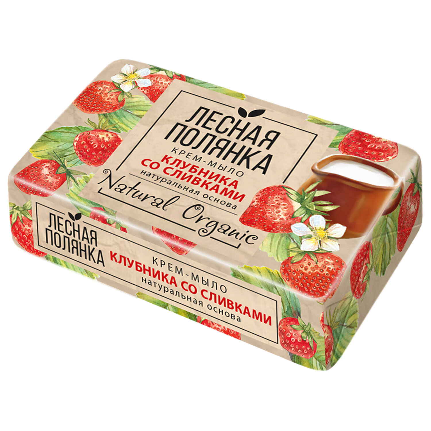 Мыло туалетное ЛЕСНАЯ ПОЛЯНКА с ярким ароматом клубники и нежных сливок питает кожу, помогая сохранить её гладкой и упругой.