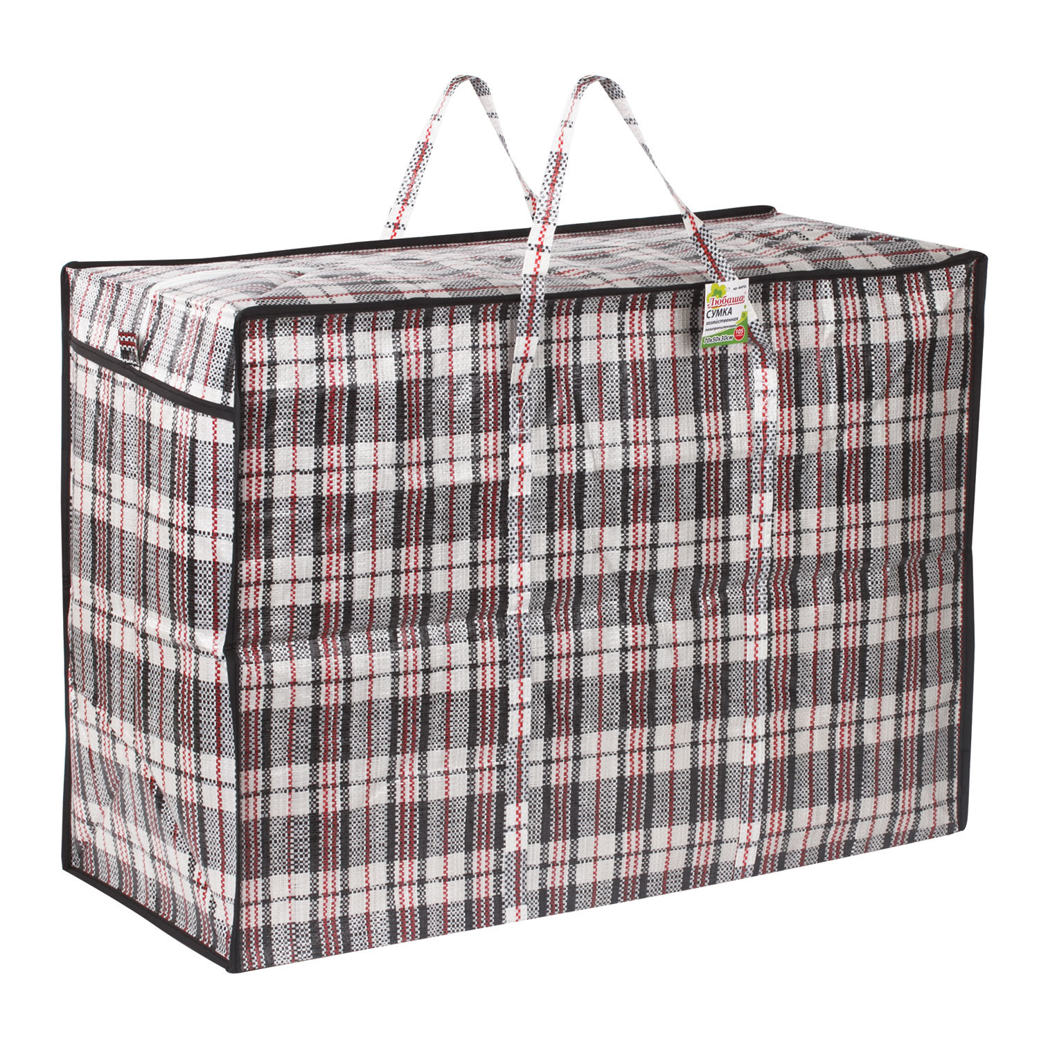 Сумка-баул хозяйственная, полипропилен, 70х50х30 см,105 литров, черно-красная, 170 г/м2, ЛЮБАША Код товара: 604703 263,63 ₽ Купить Производитель:ЛЮБАША Хозяйственная сумка-баул ЛЮБАША очень удобна и вместительна, не промокает и надежно защищает вещи от влаги. Применяется как упаковка для перевозки товаров, транспортировки грузов. Незаменима в торговых точках, магазинах, на ярмарках и рынках. Изготовлена из высококачественного плотного полипропилена плотностью 170 г/м2. Отстрочка по периметру гарантирует дополнительную прочность и придает изделию аккуратный вид. Застежка - молния. Размер - 70х50х30 см. Цвет - комбинация черного и красного.Производство: КитайОбъем: 105 лМатериал: полипропиленПлотность материала: 170 г/м2Отстрочка по периметру: даЗастежка: молнияВысота: 70 смШирина: 50 смГлубина: 30 смЦвет: черно-красныйВес: 258 грРазмер упаковки: 0.8 × 71 × 26 смОбъём: 0.0009 м3Промежуточная упаковка: 96 штТранспортная упаковка: 96 штШтрих-код: 4606224178004 Сертификат-1.jpg Сертификат-2.jpg Сертификат-3.jpg