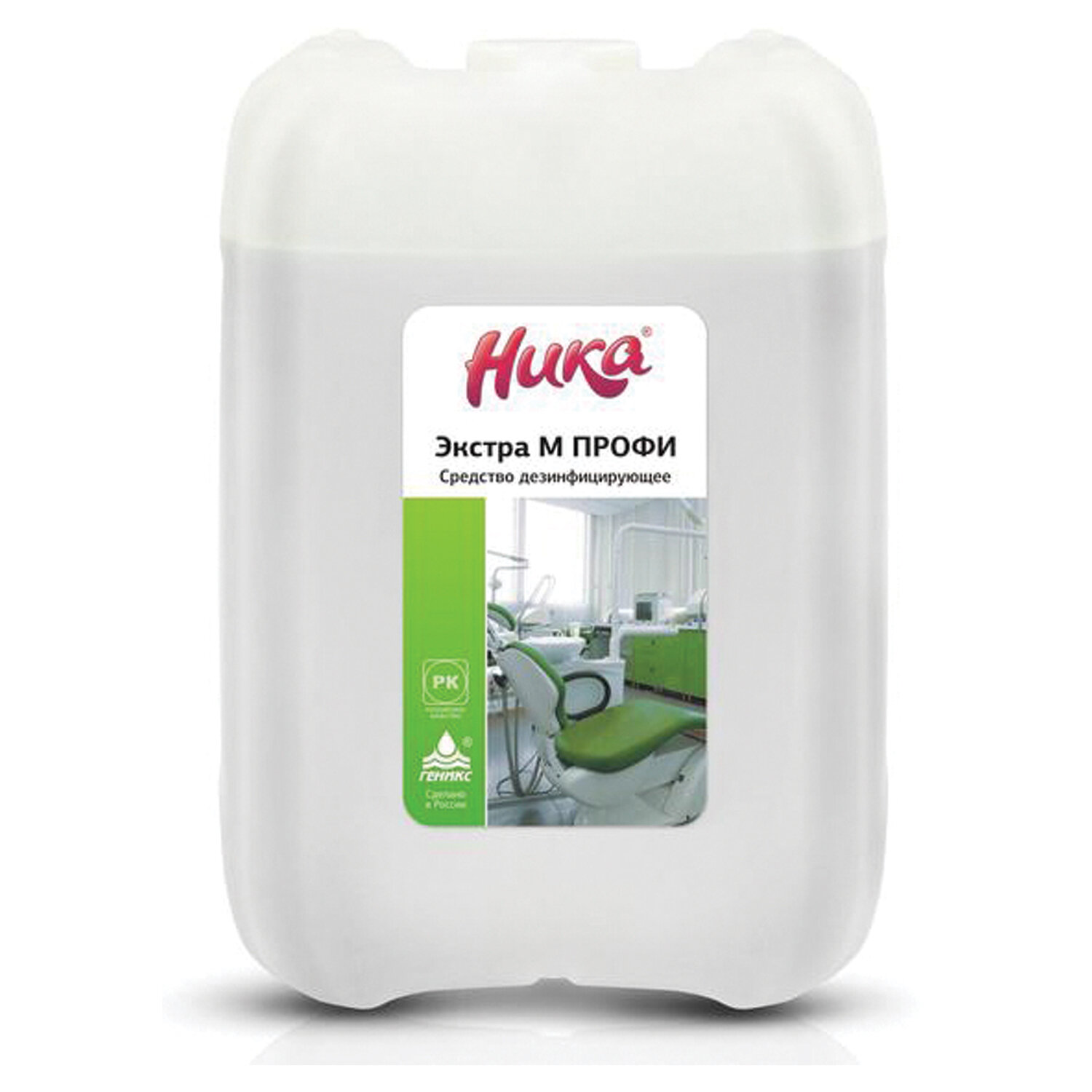 Средство НИКА "Экстра М Профи" представляет собой прозрачную жидкость от бесцветного до желтого. Допускается в процессе хранение появление незначительного осадка. В качестве действующих веществ содержит N,N-бис-(3-aминопропил) додециламин 0,7%, дидецилдиметиламмоний хлорид 2,7%, полигексаметиленгуанидин гидрохлорид 0,7% и другие функциональные компоненты. рН 1% водного раствора - 8,0-10,0.