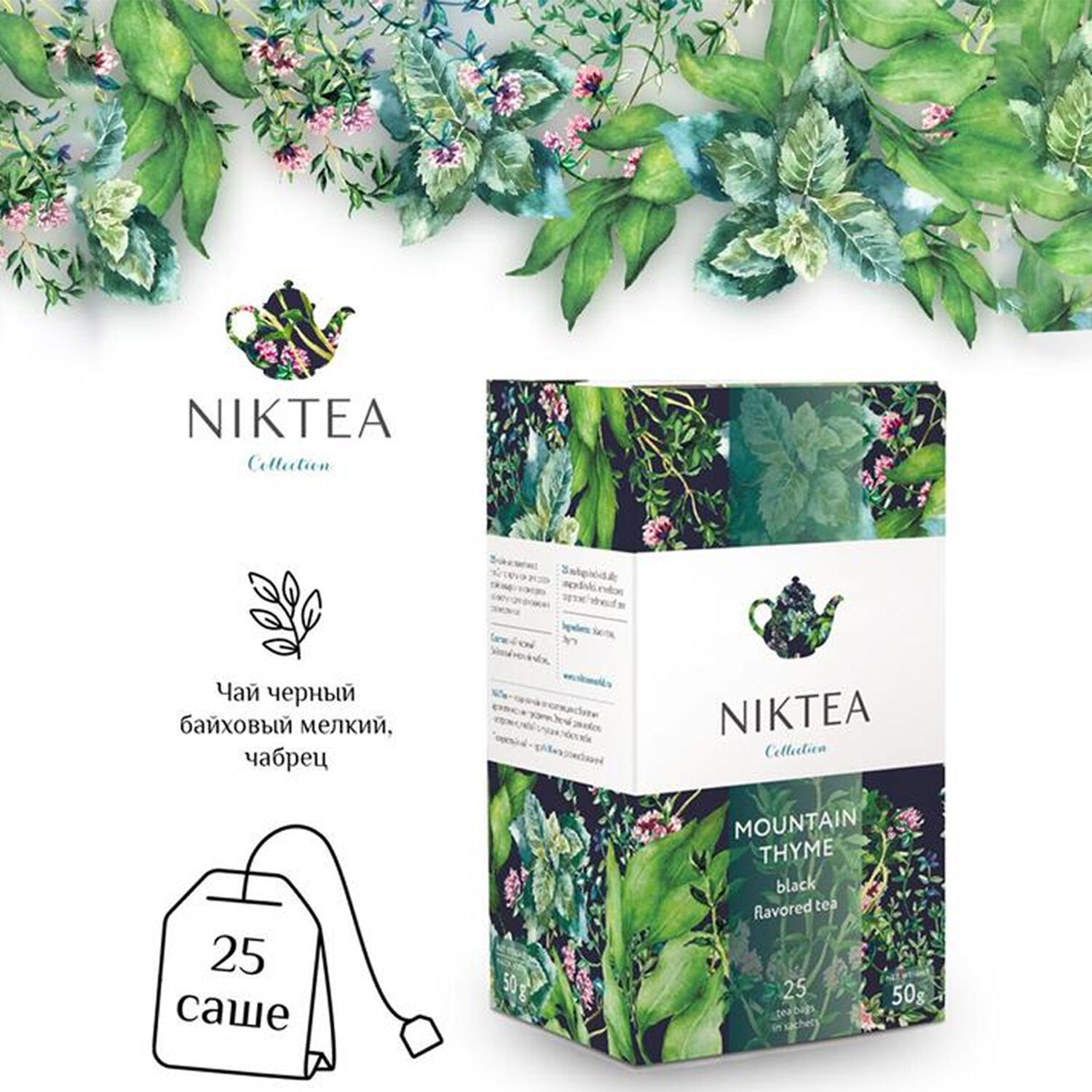 Чай NIKTEA "Горный Чабрец" черный, 25 пакетиков в конвертах по 2 г Код товара: 622908 188,18 ₽ Купить Производитель:NIKTEA NIKTEA "Горный Чабрец" – пряный черный чай с листочками душистого горного чабреца. Букет зрелый, древесный, чуть маслянистый. Прекрасно сочетается с блюдами из мяса и печеных овощей. NIKTEA – это действительно качественный чай. Для истинных ценителей производитель предлагает безупречное качество: отборное сырье, фасовку на высокотехнологичном производственном комплексе в России, постоянный педантичный контроль готового продукта, а также сертификацию сырья по международным стандартам. NIKTEA – это стиль. Необычная упаковка с модным авторским дизайном создает яркий и запоминающийся стиль, а интересные коктейльные рецептуры дают возможность экспериментировать со вкусами. Фильтр-бумага для пакетированного чая NIKTEA поставляется одним из мировых лидеров по производству специальных высококачественных бумаг – компанией Glatfelter. Чайная фильтровальная бумага Glatfelter представляет собой специально разработанный микс из натурального волокна абаки и целлюлозы. Такая фильтр-бумага обеспечивает быструю и качественную экстракцию чая, но в то же самое время не пропускает даже самые мелкие частицы чайного листа в настой. В результате вы получаете превосходный цвет, богатый вкус и насыщенный аромат чая.Производство: РоссияВид чая: черныйКоличество пакетиков: 25 шт.Аромат: чабрецНаличие ярлычка: даНаличие конвертика: даТип пакетика: стандартныйСерия: Горный ЧабрецТип упаковки: картонная упаковкаСрок годности: 36 мес.Фирма-производитель: Алеф Трейд МСКСрок годности: 36 месВес: 124 грРазмер упаковки: 7.1 × 15.1 × 8 смОбъём: 0.0011 м3Промежуточная упаковка: 8 штТранспортная упаковка: 8 штШтрих-код: 4665302980588 Сертификат-1.jpg Сертификат-2.jpg Сертификат-3.jpg