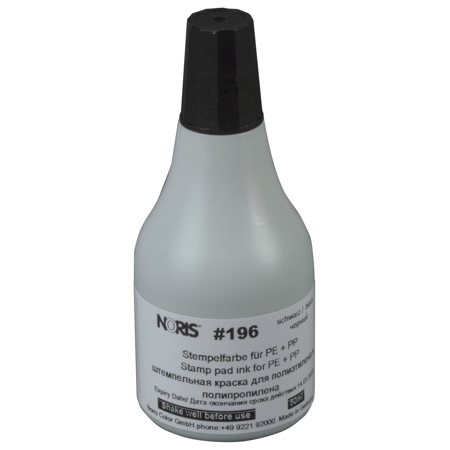 Краска штемпельная NORIS, черная, 50 мл (специальная для полиэтилена и полипропилена) Код товара: 223621 1 961 ₽ Купить Производитель:NORIS Штемпельная краска на спиртовой основе для полиэтилена и полипропилена. Стойкая к трению. При использовании краски рекомендуется использовать клише штампа из резины, что обеспечит его долгий срок службы. Также рекомендуется использовать подушки со специальным слоем, который обеспечивает экономию краски и избавляет от преждевременного высыхания краски в подушке (код для заказа подушки - 238396). Внимание! Краска на спиртовой основе разрушает клише печати из полимеров.Производство: ГерманияЦвет штемпельной краски: черныйНазначение: специальная для пластикаОбъем флакона: 50 млСостав штемпельной краски: спиртовая основаНаличие дозатора: даСерия: 196СВремя высыхания оттиска: 12 секундСрок годности: 24 месВес: 60 грРазмер упаковки: 9.1 × 4 × 4 смОбъём: 0.0002 м3Промежуточная упаковка: 10 штТранспортная упаковка: 10 шт Файлы Сертификат-1.jpg Сертификат-2.jpg Сертификат-3.jpg Сертификат-4.jpg Сертификат-5.jpg Сертификат-6.jpg Сертификат-7.jpg Сертификат-8.jpg Сертификат-9.jpg Сертификат-10.jpg Сертификат-11.jpg Сертификат-12.jpg Сертификат-13.jpg Сертификат-14.jpg Сертификат-15.jpg Сертификат-16.jpg Сертификат-17.jpg Сертификат-18.jpg Сертификат-19.jpg Сертификат-20.jpg Сертификат-21.jpg Сертификат-22.jpg Сертификат-23.jpg Сертификат-24.jpg Сертификат-25.jpg Сертификат-26.jpg