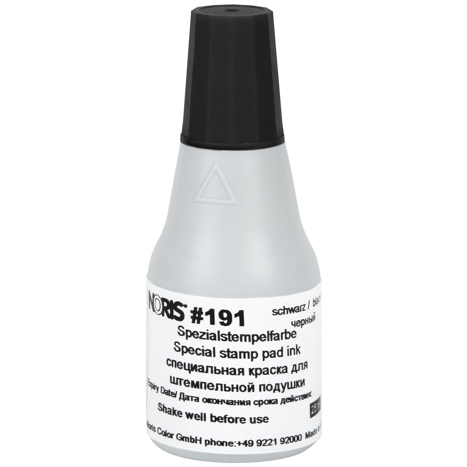 Краска штемпельная NORIS, черная, 25 мл, (унив. для глянц. бумаги, металла, пластмасс и т.д.) Код товара: 223623 727,54 ₽ Купить Производитель:NORIS Универсальная краска на спиртовой основе для непористых поверхностей: глянцевая бумага, картон, металлы, пластмасса, дерево, ткань, целлофан, черепица, кирпич, керамика, фарфор, эмаль, стекло, CD-диски и т.д. Исключение - полиэтилен и полипропилен. Универсальная краска на спиртовой основе наносится на непористые поверхности: глянцевую бумагу, картон, железо, олово, свинец, медь, платину, пластмассу, дерево, фанеру, ткань, целлофан, черепицу, кирпич, керамику, фарфор, эмаль, стиропор, стекло, CD-диски и многое другое. Исключение - полиэтилен и полипропилен. Время высыхания - 50 секунд. При использовании краски рекомендуется клише штампа из резины, что обеспечит долгий срок службы клише штампа. Также рекомендуется использовать подушки со специальным слоем, который обеспечивает экономию краски и избавляет от преждевременного высыхания краски в подушке (код для заказа подушки - 232285). Внимание! Краска на спиртовой основе разрушает клише печати из полимеров.Производство: ГерманияЦвет штемпельной краски: черныйНазначение: универсальнаяОбъем флакона: 25 млСостав штемпельной краски: спиртовая основаНаличие дозатора: даСерия: 191АВремя высыхания оттиска: 50 секундСрок годности: 24 месВес: 35 грРазмер упаковки: 7.7 × 3.1 × 3.1 смОбъём: 0.0001 м3Промежуточная упаковка: 10 штТранспортная упаковка: 10 шт Файлы Сертификат-1.jpg Сертификат-2.jpg Сертификат-3.jpg Сертификат-4.jpg Сертификат-5.jpg Сертификат-6.jpg Сертификат-7.jpg Сертификат-8.jpg Сертификат-9.jpg Сертификат-10.jpg Сертификат-11.jpg Сертификат-12.jpg Сертификат-13.jpg Сертификат-14.jpg Сертификат-15.jpg Сертификат-16.jpg Сертификат-17.jpg Сертификат-18.jpg Сертификат-19.jpg Сертификат-20.jpg Сертификат-21.jpg Сертификат-22.jpg Сертификат-23.jpg Сертификат-24.jpg Сертификат-25.jpg Сертификат-26.jpg