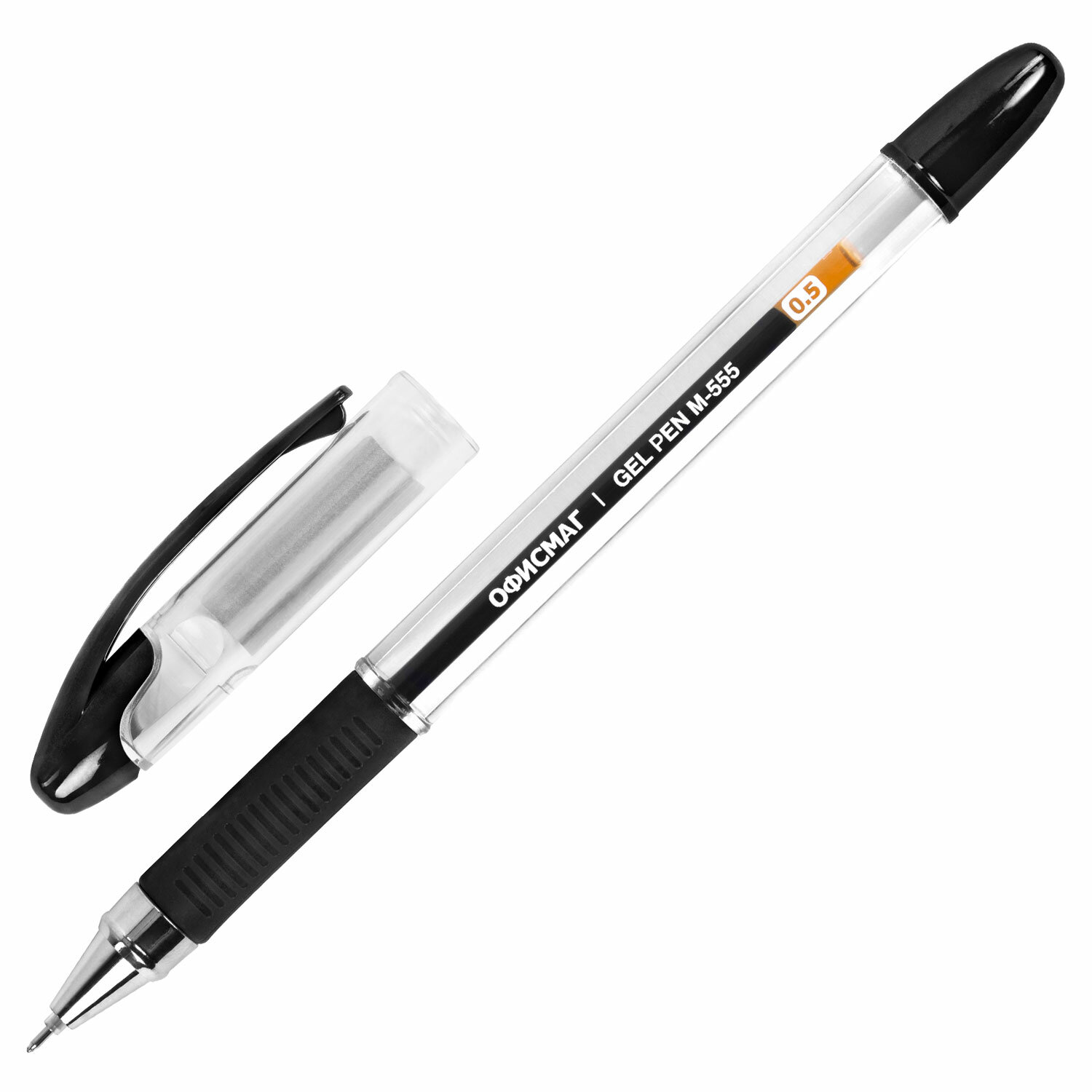 Ручка гелевая с грипом ОФИСМАГ "M-555", ЧЕРНАЯ, игольчатый наконечник 0,5 мм, линия письма 0,35 мм Код товара: 144213 34,78 ₽ Купить Производитель:ОФИСМАГ Гелевая ручка ОФИСМАГ "М-555" обеспечивает комфортное и качественное письмо. Имеет круглый прозрачный корпус с резиновым держателем. Детали ручки выполнены в цвет черных чернил. Сменный стержень длиной 130 мм с игольчатым наконечником позволит использовать ручку максимально долго. Пишущий узел диаметром 0,5 мм создает линию письма, равную 0,35 мм. Подходит для ОГЭ/ЕГЭ.Производство: КитайЦвет чернил: черныйТолщина линии письма: 0.35 ммДиаметр пишущего узла: 0.5 ммФорма наконечника: игольчатыйКоличество в комплекте: 1 шт.Эффект чернил: классическиеПодходит для ЕГЭ/ОГЭ: даСерия: M-555Длина сменного стержня: 130 ммЭргономичная зона захвата: резиновый держательЦвет корпуса: прозрачныйФорма корпуса: круглаяПокрытие корпуса: без дополнительного покрытияДлина письма: 400 мУпаковка: картонная коробкаСрок годности: 60 месВес: 13 грРазмер упаковки: 1.2 × 14.6 × 1.7 смПромежуточная упаковка: 12 штТранспортная упаковка: 1728 штШтрих-код: 4606224411057 Сертификат-1.jpg Сертификат-2.jpg Сертификат-3.jpg