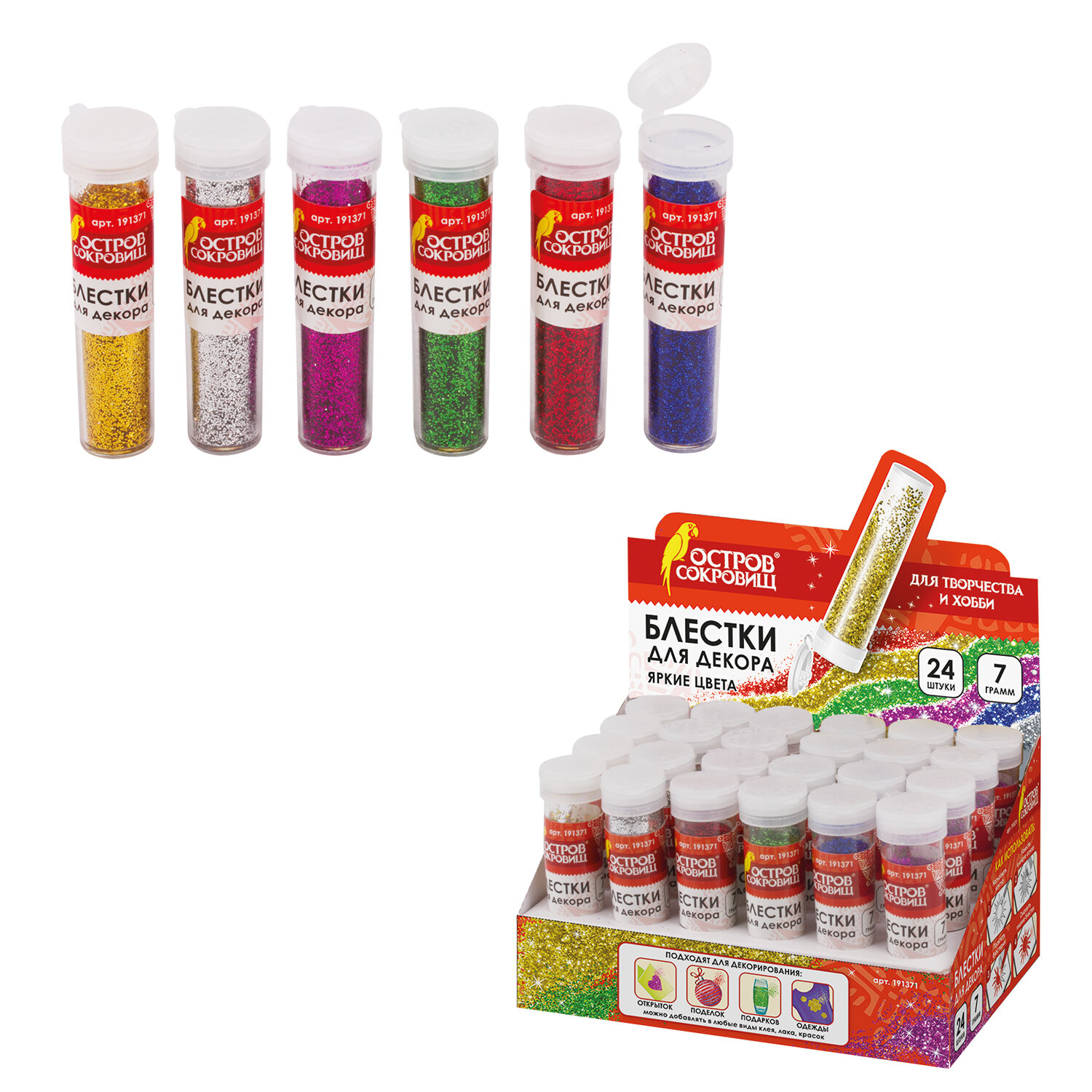 Блестки (глиттер) для декора, поделок, DIY, творчества, оформления, ОСТРОВ СОКРОВИЩ, 7 грамм, цвета ассорти, в дисплее Код товара: 191371 34,4 ₽ Купить Производитель:ОСТРОВ СОКРОВИЩ Блестки ОСТРОВ СОКРОВИЩ используются для декорирования различных поделок и аппликаций, в украшении предметов интерьера, изготовлении поздравительных открыток и других изделий в различных техниках рукоделия. Яркие и разнообразные цвета: зеленый, красный, синий, фиолетовый, а также представлены 2 металлических оттенка - "серебро" и "золото". Блестки подходят для любых поверхностей и всех типов красок и лаков. Изготовлены из полиэтилена. Гипоалергенны. Предназначены для детей старше 6 лет. Стикер с индивидуальным штрих-кодом есть на каждой тубе с дозатором. В каждой тубе по 7 грамм блесток. Всего в дисплее 24 тубы. Поставляется в нескольких вариантах цвета (без возможности выбора).Производство: КитайКоличество цветов в наборе: 6 шт. Особенности: яркие цветаЦвет: зеленый, золото, красный, серебро, синий, фиолетовыйМатериал: полиэтиленВес цвета: 7 гВозрастная группа: от 6 лет летТип товара: блестки для декора (глиттер) в дисплееСерия: КлассикаУпаковка: диспенсер с дозаторомВес: 15 грРазмер упаковки: 2.1 × 7.6 × 2.1 смОбъём: 0.0001 м3Промежуточная упаковка: 24 штТранспортная упаковка: 432 штШтрих-код: 4606224203843 Файлы Сертификат-1.jpg Сертификат-2.jpg Сертификат-3.jpg Сертификат-4.jpg Сертификат-5.jpg Сертификат-6.jpg Сертификат-7.jpg Сертификат-8.jpg Сертификат-9.jpg Сертификат-10.jpg Сертификат-11.jpg Сертификат-12.jpg Сертификат-13.jpg Сертификат-14.jpg Сертификат-15.jpg Сертификат-16.jpg Сертификат-17.jpg Сертификат-18.jpg Сертификат-19.jpg Сертификат-20.jpg Сертификат-21.jpg Сертификат-22.jpg Сертификат-23.jpg Сертификат-24.jpg Сертификат-25.jpg Сертификат-26.jpg