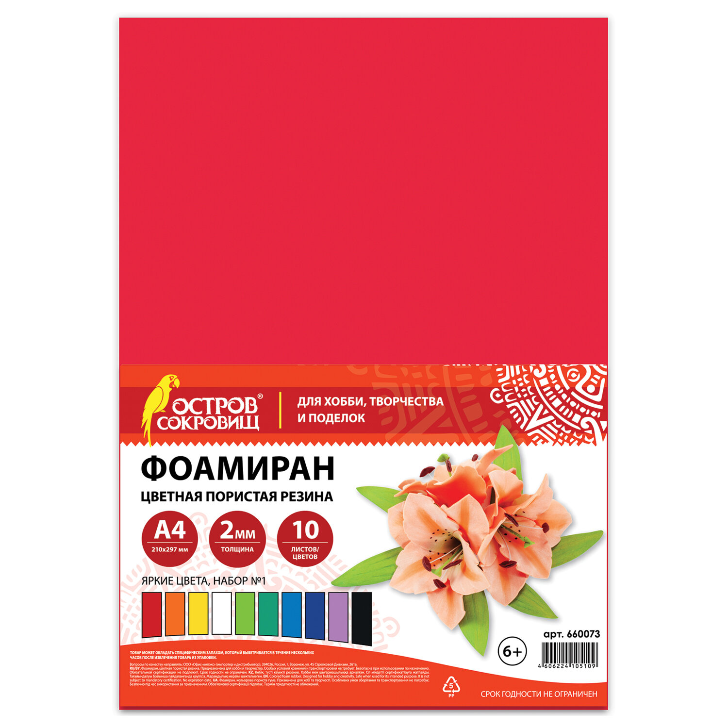Пористая резина/фоамиран А4, 2 мм, НАБОР №1, 10 листов, 10 цветов, яркие цвета, ОСТРОВ СОКРОВИЩ Код товара: 660073 213,84 ₽ Купить Производитель:ОСТРОВ СОКРОВИЩ Цветная пористая резина (фоамиран) ОСТРОВ СОКРОВИЩ в листах предназначена для хобби, творчества и рукоделия. 10 насыщенных цветов формата А4 позволят создать уникальную и эффектную поделку! Толщина каждого листа - 2 мм, размер листа - 29,7х21 см. Материал очень прост в использовании: легко режется обычными ножницами, ему можно придать любую форму растягивая и скручивая. Насыщенные цвета помогут выгодно выделить Вашу поделку. Такие цвета зарядят энергией, легко запоминаются и подчеркнут Вашу индивидуальность. Используется для создания флористического декора, аппликаций, сувениров, детского рукоделия и создания украшений. Готовые изделия представляют собой: аксессуары для волос (банты, ободки, резинки, короны), бижутерию, банты для подарочных упаковок, елочные игрушки. Не токсична, безопасна для детского творчества. Цветная пористая резина ОСТРОВ СОКРОВИЩ - блестящий материал для воплощения Ваших творческих идей! Данный вид фоамирана можно мыть.Производство: КитайКоличество листов: 10Количество цветов: 10Формат: А4Толщина: 2 ммШирина: 21 смДлина: 29.7 смТип товара: пористая резинаТип спецэффекта: яркие цвета 1Цвет: ассортиУпаковка: полибэг с европодвесомВес: 86 грРазмер упаковки: 1.8 × 30.1 × 22 смОбъём: 0.0015 м3Промежуточная упаковка: 100 штТранспортная упаковка: 100 штШтрих-код: 4606224105109 Сертификат-1.jpg Сертификат-2.jpg Сертификат-3.jpg