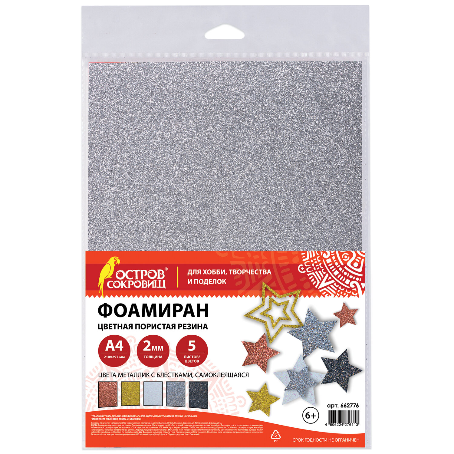 Пористая резина/фоамиран А4, 2 мм, НАБОР, 5 листов, 5 цветов, металлик, блестки, самоклеящаяся, ОСТРОВ СОКРОВИЩ Код товара: 662776 199,98 ₽ Купить Производитель:ОСТРОВ СОКРОВИЩ Цветная пористая резина (фоамиран) ОСТРОВ СОКРОВИЩ предназначена для хобби, творчества и рукоделия. 5 цветов металлик с глиттером формата А4 на самоклеющейся основе позволят создать уникальную и эффектную поделку! Толщина каждого листа - 2 мм, размер листа - 29,7х21 см. Глиттерный фоамиран - это фоамиран, декорированный блестками. Материал очень прост в использовании: легко режется обычными ножницами, ему можно придать любую форму, растягивая и скручивая, блёстки не осыпаются. Самоклеящаяся основа позволяет использовать пористую резину без применения клея, качественный клеевой слой надёжно фиксирует фоамиран на различных поверхностях. Цвета металлик помогут выгодно выделить поделку, а их насыщенность не оставит никого равнодушным. Используется для создания флористического декора, аппликаций, сувениров, детского рукоделия и создания украшений. Готовые изделия представляют собой: аксессуары для волос (банты, ободки, резинки, короны), бижутерию, банты для подарочных упаковок, елочные игрушки. Не токсична, безопасна для детского творчества.Производство: КитайКоличество листов: 5Количество цветов: 5Формат: А4Толщина: 2 ммШирина: 21 смДлина: 29.7 смТип товара: пористая резина самоклеящаясяСамоклеящаяся основа: даТип спецэффекта: металликЦвет: ассортиУпаковка: полибэг с европодвесомВес: 94 грРазмер упаковки: 1.1 × 30 × 21.3 смОбъём: 0.0008 м3Промежуточная упаковка: 200 штТранспортная упаковка: 200 штШтрих-код: 4606224276113 Файлы Сертификат-1.jpg Сертификат-2.jpg Сертификат-3.jpg Сертификат-4.jpg