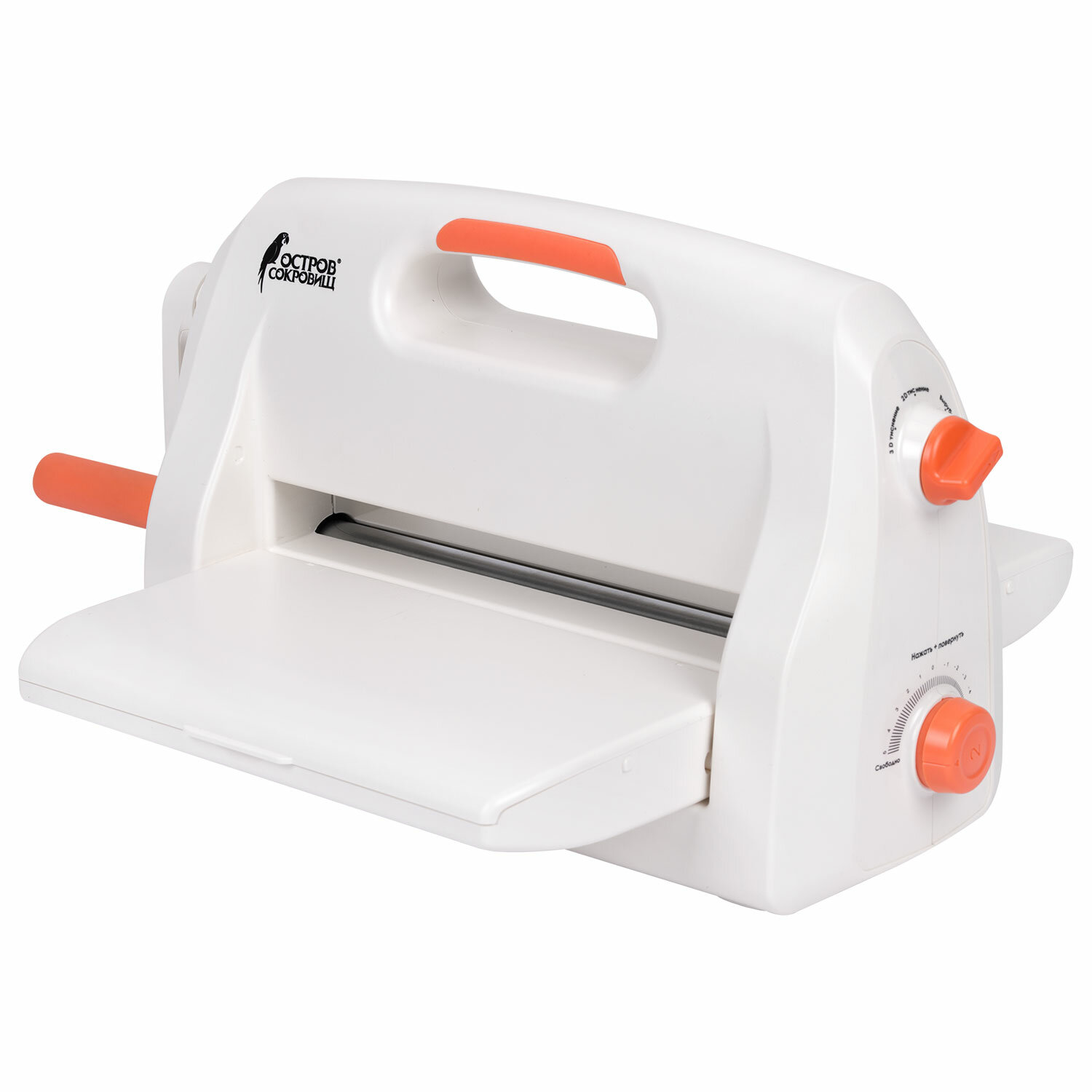 Универсальная машинка для вырубки и тиснения с набором инструментов "ОС-4", формат А4 благодаря увеличенному размеру пропускной платформы может работать с ножами и папками для тиснения большинства производителей, а также с другими ножами для вырубки и тиснения и папками для тиснения формата А4, широко представленными в ассортименте ОСТРОВ СОКРОВИЩ.