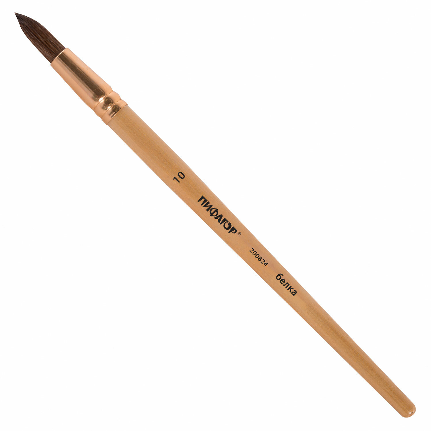 Кисть ПИФАГОР, БЕЛКА, круглая, № 10, деревянная лакированная ручка, с колпачком, пакет с подвесом Код товара: 200824 227,16 ₽ Купить Производитель:ПИФАГОР Кисть ПИФАГОР № 10 подходит для работы с акварелью, гуашью, тушью, а также для прорисовывания различных деталей рисунка. Снабжена защитным пластиковым колпачком. Кисть из волоса белки отлично впитывает и отдает краску, хорошо держит форму, долговечна и надежна. Кисть № 10 позволит прорисовывать детали и наносить крупные мазки и линии. Деревянную лакированную рукоятку кисти удобно держать в руке.Производство: КитайКоличество кистей в наборе: 1 шт.Ворс: белкаНомер кисти: 10Тип кисти: круглаяРучка: укороченнаяУпаковка: пакет с европодвесомВес: 17 грРазмер упаковки: 1.2 × 24.5 × 4 смОбъём: 0.0001 м3Промежуточная упаковка: 30 штТранспортная упаковка: 240 штШтрих-код: 4606224252230 Сертификат-1.jpg Сертификат-2.jpg Сертификат-3.jpg