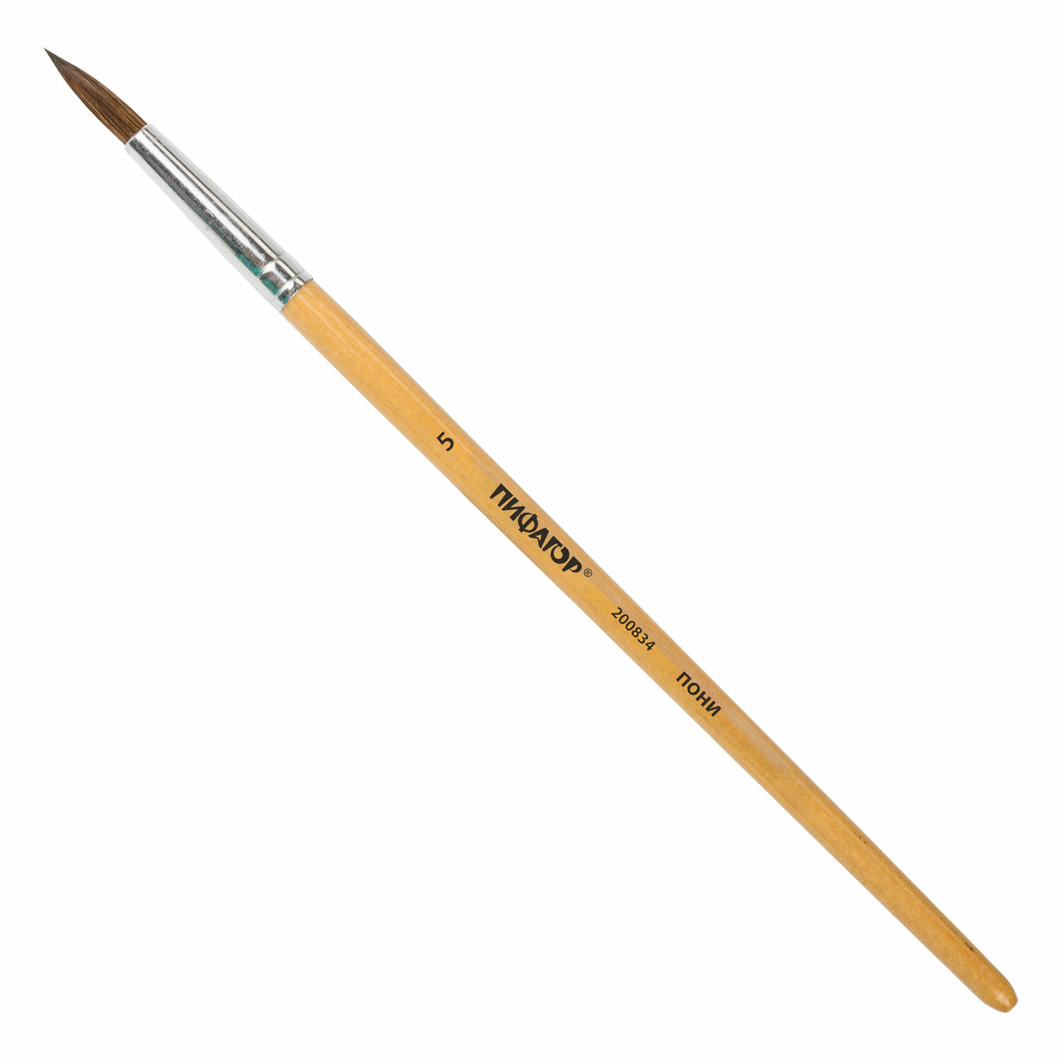 Кисть ПИФАГОР, ПОНИ, круглая, № 5, деревянная лакированная ручка, с колпачком Код товара: 200834 61,95 ₽ Купить Производитель:ПИФАГОР Кисть ПИФАГОР № 5 подходит для работы с акварелью, гуашью, тушью, а также для прорисовывания различных деталей рисунка. Снабжена защитным пластиковым колпачком. Кисть из волоса пони отлично впитывает и отдает краску, хорошо держит форму, долговечна и надежна. Кисть № 5 позволит прорисовывать детали и наносить крупные мазки и линии. Деревянную лакированную рукоятку кисти удобно держать в руке.Производство: КитайКоличество кистей в наборе: 1 шт.Ворс: пониНомер кисти: 5Тип кисти: круглаяРучка: укороченнаяУпаковка: нетВес: 6 грРазмер упаковки: 0.8 × 20.4 × 0.8 смПромежуточная упаковка: 30 штТранспортная упаковка: 1800 штШтрих-код: 4606224252339 Сертификат-1.jpg Сертификат-2.jpg Сертификат-3.jpg