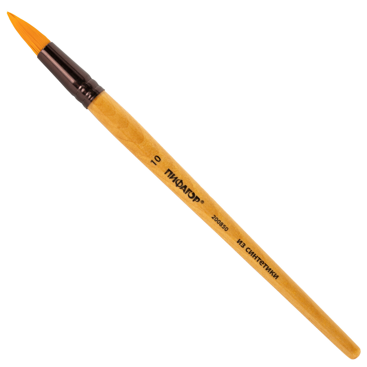 Кисть ПИФАГОР, СИНТЕТИКА, круглая, № 10, деревянная лакированная ручка, с колпачком, пакет с подвесом Код товара: 200850 193,21 ₽ Купить Производитель:ПИФАГОР Кисть ПИФАГОР № 10 подходит для работы с акварелью, гуашью, тушью, акрилом, а также для прорисовывания различных деталей рисунка. Снабжена защитным пластиковым колпачком. Кисть из синтетического ворса эластичная, не распадается, хорошо держит форму, долговечна и надежна. Кисть № 10 позволит прорисовывать детали и наносить крупные мазки и линии. Деревянную лакированную рукоятку кисти удобно держать в руке.Производство: КитайКоличество кистей в наборе: 1 шт.Ворс: синтетикаНомер кисти: 10Тип кисти: круглаяРучка: укороченнаяУпаковка: пакет с европодвесомВес: 19 грРазмер упаковки: 1.2 × 23.9 × 1.2 смОбъём: 0.0001 м3Промежуточная упаковка: 30 штТранспортная упаковка: 240 штШтрих-код: 4606224252483 Сертификат-1.jpg Сертификат-2.jpg Сертификат-3.jpg