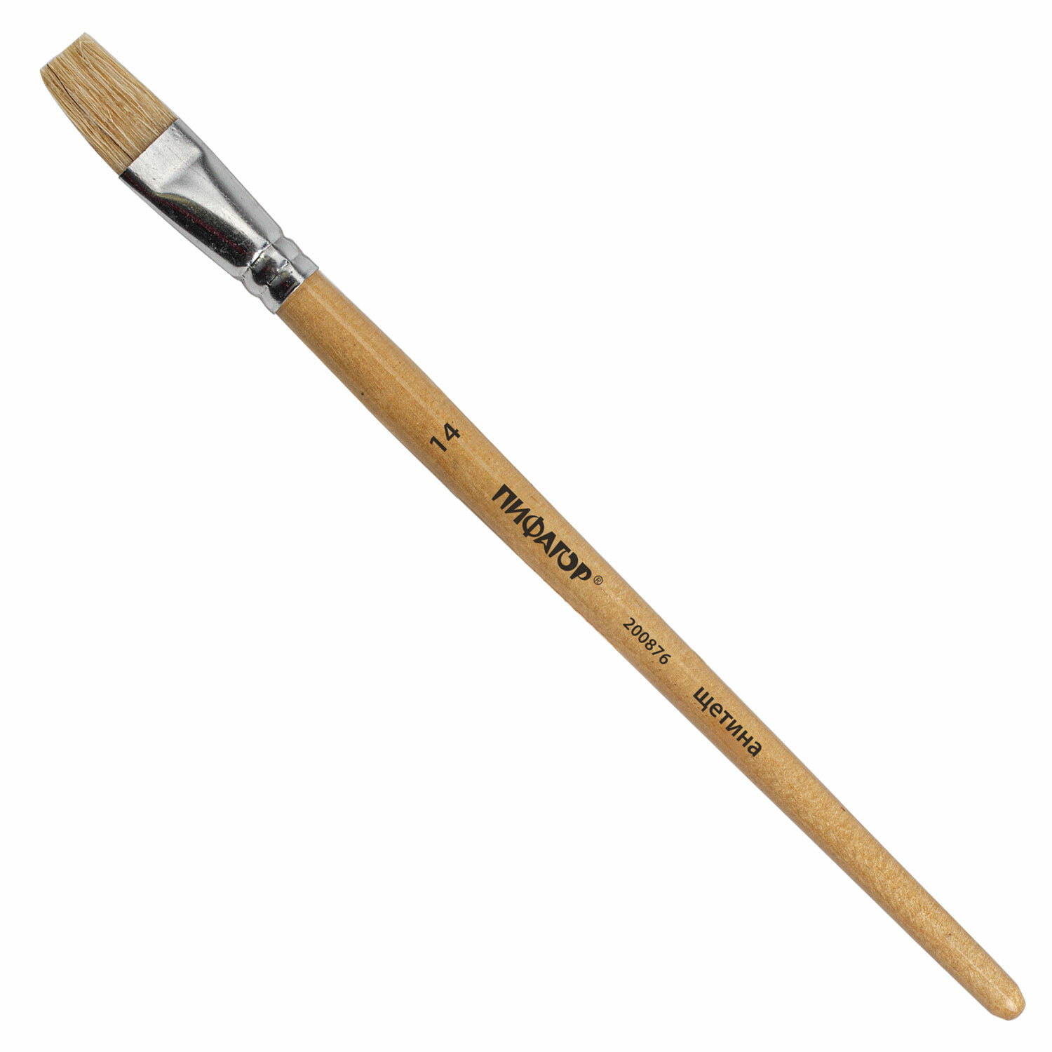 Кисть ПИФАГОР, ЩЕТИНА, плоская, № 14, деревянная лакированная ручка, пакет с подвесом Код товара: 200876 105,29 ₽ Купить Производитель:ПИФАГОР Кисть ПИФАГОР № 14 подходит для работы с гуашью, акрилом, маслом, темперой, а также для прорисовывания различных деталей рисунка. Кисть из щетины обладает высокой упругостью, хорошо держит форму, долговечна и надежна. Кисть № 14 позволит прорисовывать детали и наносить крупные мазки и линии. Деревянную лакированную рукоятку кисти удобно держать в руке.Производство: КитайКоличество кистей в наборе: 1 шт.Ворс: щетинаНомер кисти: 14Тип кисти: плоскаяРучка: укороченнаяУпаковка: пакет с европодвесомВес: 14 грРазмер упаковки: 1.1 × 23 × 4.5 смОбъём: 0.0001 м3Промежуточная упаковка: 30 штТранспортная упаковка: 1200 штШтрих-код: 4606224252629 Сертификат-1.jpg Сертификат-2.jpg Сертификат-3.jpg