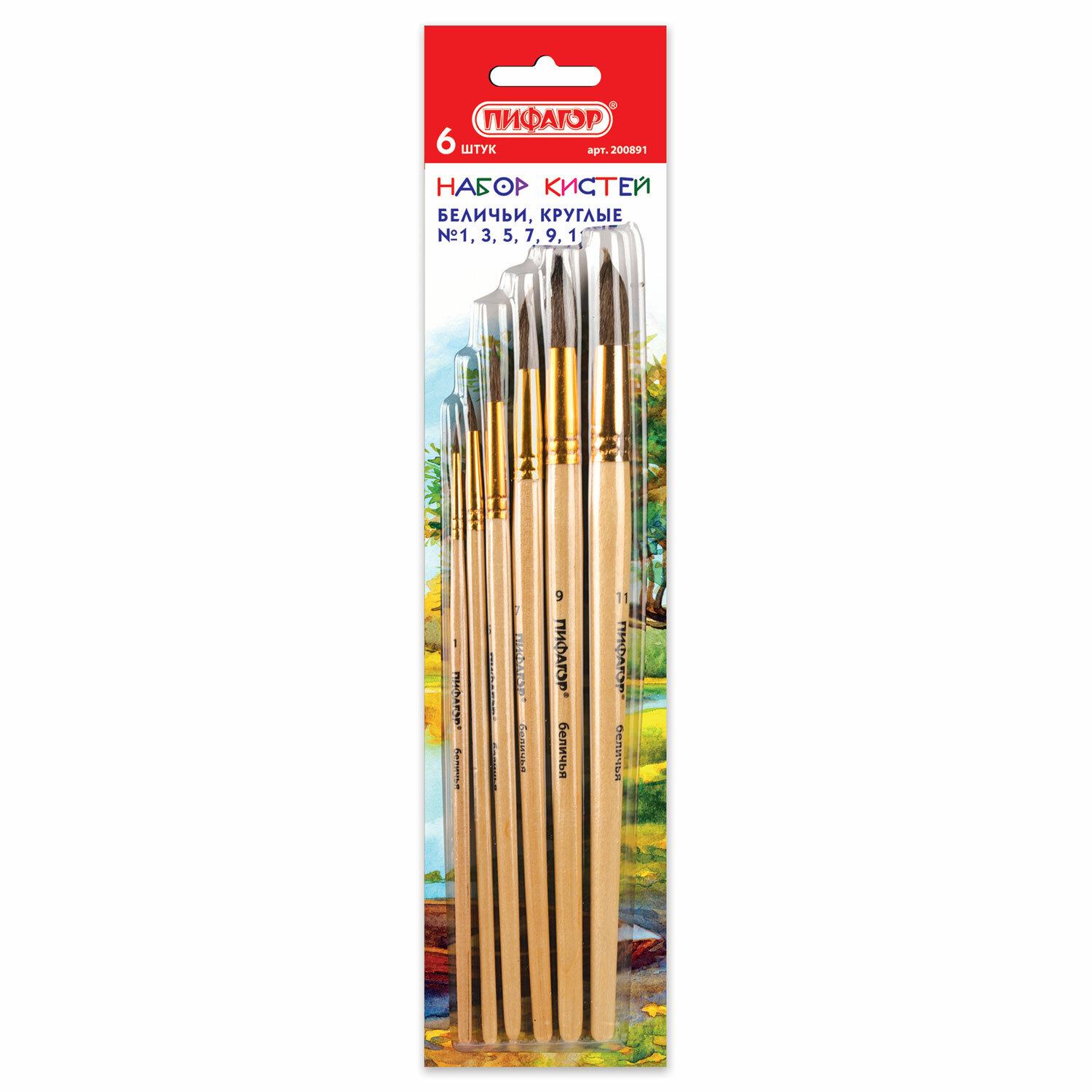Кисти ПИФАГОР, набор 6 шт. (БЕЛКА: круглые № 1, 3, 5, 7, 9, 11), блистер с европодвесом Код товара: 200891 353,43 ₽ Купить Производитель:ПИФАГОР Набор кистей ПИФАГОР различного размера позволяет начинающим художникам решать любые творческие задачи в детском саду, школе и дома. Кисти имеют разную жесткость. Кисти из ворса белки отлично впитывают и отдают краску, хорошо держат форму, долговечны и надежны. Благодаря кистям №1 и 3 ребенку будет комфортно прорисовывать мелкие детали. Кисти № 5, 7, 9 и 11 позволят делать более крупные мазки и линии. Деревянную лакированную рукоятку кисти удобно держать в руке.Производство: КитайКол-во кистей в наборе: 6 шт.Тип кисти: круглаяНомер кисти: 1, 11, 3, 5, 7, 9Ворс: белкаРучка: укороченнаяУпаковка: блистер с европодвесомСерия: SchoolВес: 60 грРазмер упаковки: 1.4 × 29.6 × 6.8 смОбъём: 0.0003 м3Промежуточная упаковка: 12 штТранспортная упаковка: 288 штШтрих-код: 4606224252704 Сертификат-1.jpg Сертификат-2.jpg Сертификат-3.jpg