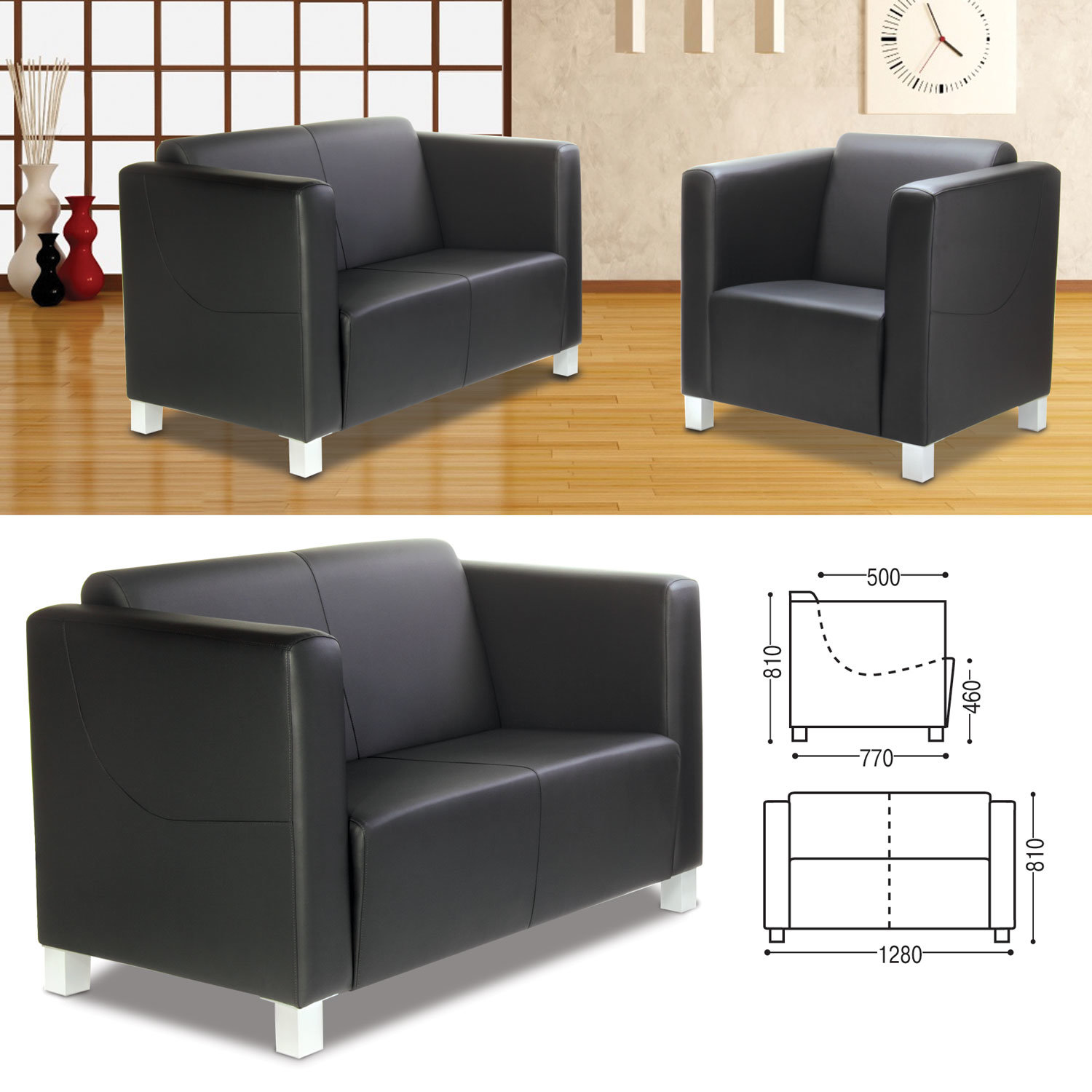 Диван мягкий двухместный "Милано", 810х1280х770 мм, c подлокотниками, экокожа, черный Код товара: 530430 30 172 ₽ Купить Производитель:RAMART "Милано" - эргономичная, стильная и практичная офисная мебель. Подходит для оборудования зон отдыха, переговоров и ожидания, будь то холл отеля, офиса или клуб. В качестве обивочного материала используется "дышащий" материал нового поколения - "экокожа". Производство: РоссияТип мягкой мебели: диван двухместныйСерия: МиланоЦвет обивки: черныйМатериал каркаса: массив древесины хвойных, фанераМатериал отделки: экокожаТип отделки: матоваяМягкие элементы: пенополиуретан, синтепон, эластичные ремниМатериал опор: металлВысота опор: 100 ммНаличие подлокотников: даВысота: 810 ммШирина: 1270 ммГлубина: 770 ммВысота до сиденья: 460 ммГлубина сиденья: 500 ммСоответствует требованиям ГОСТа: ГОСТ 19917-2014Поставляется в собранном виде: даВес: 39,98 кгРазмер упаковки: 85.5 × 132 × 79.5 смОбъём: 0.8972 м3Промежуточная упаковка: 1 штТранспортная упаковка: 1 штШтрих-код: 4606224056586 Сертификат-1.jpg Сертификат-2.jpg Сертификат-3.jpg