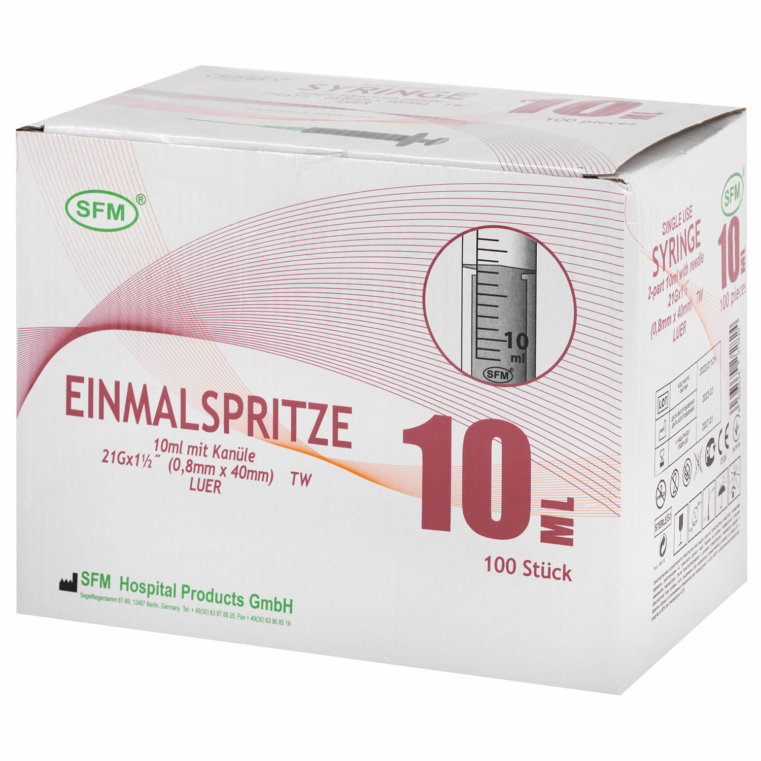 Шприц 2-х компонентный SFM, 10 мл, КОМПЛЕКТ 100 шт, в коробке, игла 0,8х40 - 21G Код товара: 630460 1 482,04 ₽ Купить Производитель:SFM Двухкомпонентный одноразовый шприц состоит из двух частей: цилиндр и поршень, изготовлен из специального полипропилена. Объем – 10 мл, размер иглы – 21G. Шприцы применяют для выполнения подкожных, внутримышечных инъекций и других лечебно-диагностических мероприятий. Состоят из двух частей: цилиндр и поршень, идет в комплекте с иглой. Изготовлены из специального полипропилена и стерильно упакованы.Безболезненность инъекции обуславливается легким скольжением поршня, без трения. Точная градуировка на шприце позволяет легко считывать показания. Двухкомпонентные шприцы выпущены с коаксиальным (по центру) расположением крепления иглы. Градуировка четкая, контрастная, черного цвета, что способствует максимально точной дозировке. Насечки на упоре исключают скольжение пальцев в процессе инъекции. Форма и размер ободка вокруг цилиндра обеспечивают удобство и надежность захвата и удержания шприца в момент использования. Прочное двойное стопорное кольцо предотвращает случайное выдергивание поршня в момент набора лекарственного средства. Индивидуальная стерильная блистерная упаковка с отогнутым краем – плотная мед.бумага и прозрачная пленка (состав пленки - полиэтилен).Производство: ГерманияТип товара: универсальныйКомплектность: 2-х компонентныйКоличество в комплекте: 100 шт.Объем шприца: 10 млТип наконечника: LuerРазмер иглы: 21GДиаметр иглы: 0.8 ммДлина иглы: 40 ммСрок годности: 60 месВес: 958 грРазмер упаковки: 15.6 × 23.7 × 18.4 смОбъём: 0.0076 м3Промежуточная упаковка: 16 штТранспортная упаковка: 16 штШтрих-код: 4036534272817 Файлы Сертификат-1.jpg Сертификат-2.jpg Сертификат-3.jpg Сертификат-4.jpg