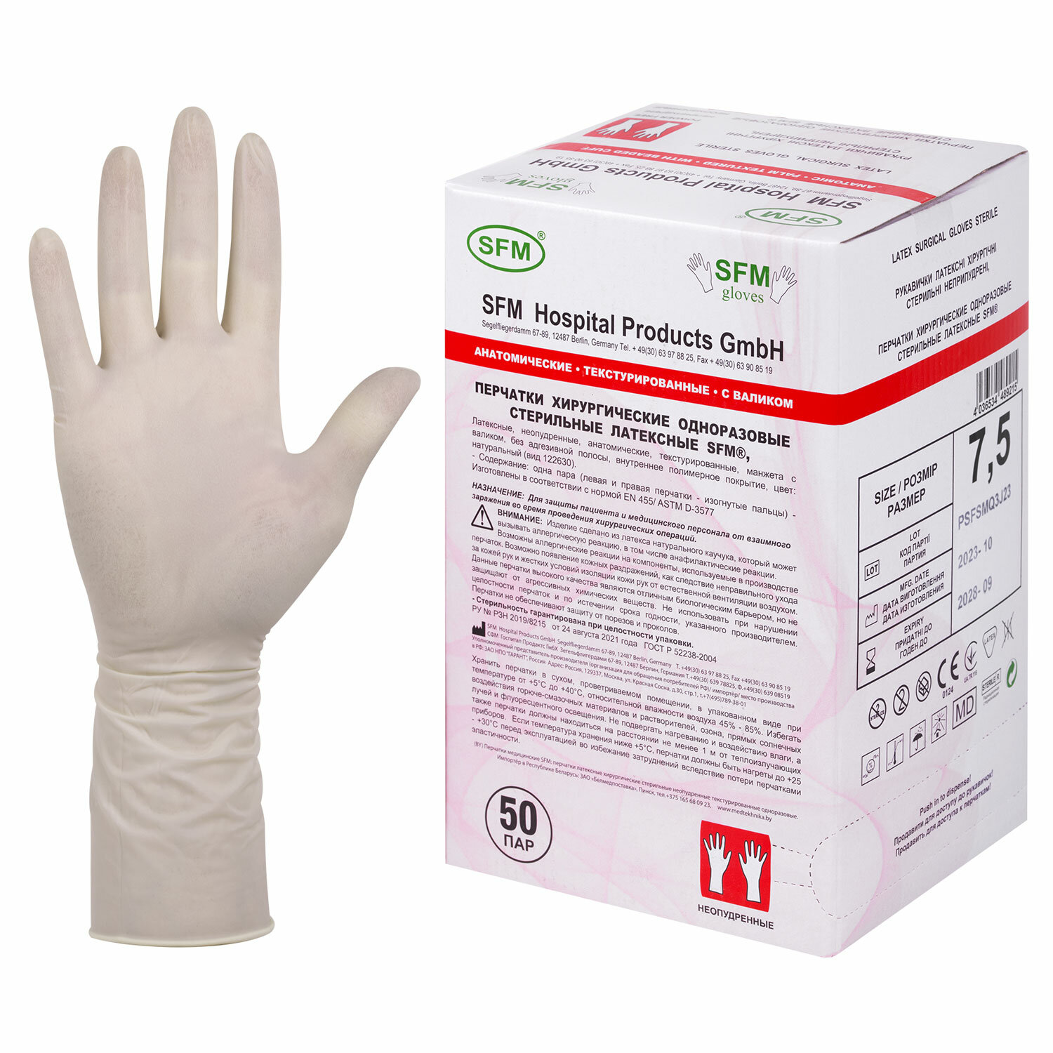 Перчатки латексные стерильные хирургические, КОМПЛЕКТ 50 пар (100 штук), Германия, размер 7,5, М (средний), SFM Код товара: 631390 2 201,6 ₽ Купить Производитель:SFM Перчатки хирургические SFM предназначены для дополнительной защиты пациентов и пользователей во время медицинской операции, биологических исследований, осмотра в стоматологическом кабинете. Перчатки стерильные, неопудренные. Разделяются на левую и правую для меньшего напряжения в руках. Имеют текстурированную поверхность по всей площади, что помогает избегать скольжения. Комплект – 50 пар (100 штук). Размер – М (7,5).Производство: ГерманияСтерильные: даМатериал: латексРазмер перчаток: 7-8 (M)Серия: SFM индив. упаковкаТип: хирургическиеНеопудренные: даТип поверхности: текстурированныеПовышенная чувствительность: даХлоринация: даФорма: анатомическаяОсобенности: удлиненная манжетаСоответствует требованиям ГОСТа: нетКоличество в комплекте: 50 парШирина ладони: 85 ммЦвет: бежевыйВид упаковки: гофрокоробВес: 1,44 кгРазмер упаковки: 13.3 × 24.5 × 15.2 смОбъём: 0.0058 м3Промежуточная упаковка: 8 штТранспортная упаковка: 8 штШтрих-код: 4036534490211 Сертификат-1.jpg Сертификат-2.jpg Сертификат-3.jpg