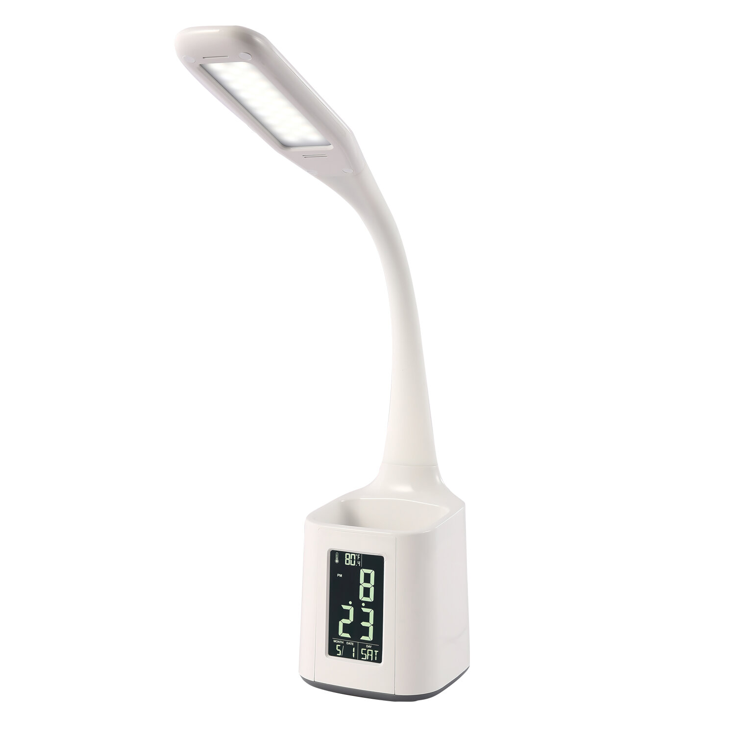 Настольная лампа / светильник SONNEN HS-01 на подставке, LCD-экран, СВЕТОДИОДНАЯ, 5 Вт, белый Код товара: 238234 2 494,43 ₽ Купить Производитель:SONNEN Настольная лампа-светильник является незаменимым атрибутом рабочего места. Модель SONNEN HS-01 прекрасно подойдет для школьника, студента и офисного сотрудника. Данный светильник оборудован дополнительными функциями: календарь, часы, термометр, будильник. Лампа высотой 48 см представлена в классическом белом дизайне благодаря которому гармонично впишется в офисный или домашний интерьер. Устройство оснащено легким пластиковым корпусом и яркой LED-матрицей на 5 Вт. Освещение с цветовой температурой 4000 K и световым потоком 300 Лм обеспечивают 26 светодиодов. Прибор оснащен сенсорным выключателем, расположенным в верхней части корпуса. Благодаря 3 режимам свечения можно самостоятельно выбрать яркость света. Светильник оборудован LСD-дисплеем для отображения текущей даты, дня недели, температуры воздуха, а также оснащен функцией будильника. Производитель сохраняет за собой право на внесение изменений в технические характеристики, комплектацию и конструкцию данной модели для улучшения эксплуатационных свойств без предварительного уведомления.Производство: КитайТип лампы: светодиоднаяТип крепления: подставкаМощность: 5 ВтЦоколь: LEDНазначение: универсальныйСерия: HS-01Цветность света: нейтральный белый - 3500-4500 КСветовой поток: 300 ЛюменКол-во режимов свечения: 3Источник света: 26 LEDИсточник питания: сетьРасположение кнопки выключателя: на плафонеСенсорный выключатель: даПроизвольная регулировка направления подсветки: даОтсутствие мерцания и шумов: даВысота: 48 смДлина шнура: 1.5 мМатериал корпуса: пластик/резинаЦвет корпуса: белыйВес: 1,47 кгРазмер упаковки: 13.7 × 34 × 18.8 смОбъём: 0.0105 м3Промежуточная упаковка: 8 штТранспортная упаковка: 8 штШтрих-код: 4606224399614 Файлы Приложение-1.pdf Сертификат-1.jpg Сертификат-2.jpg Сертификат-3.jpg Сертификат-4.jpg