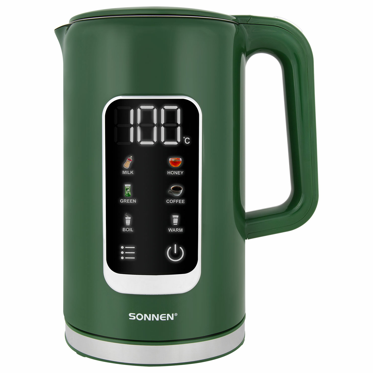 Чайник с терморегулятором и дисплеем, ДВОЙНЫЕ СТЕНКИ, SONNEN KT-8723EG, 1,7 л, 2200 Вт, изумрудный Код товара: 454689 2 604,82 ₽ Купить Производитель:SONNEN Чайник SONNEN KT-8723EG глубокого зеленого цвета станет ярким акцентом на вашей кухне или в офисе и поможет приготовить большое количество согревающих напитков. Объем чайника – 1,7 литра, что позволяет нагреть достаточное количество воды для нескольких человек. Мощность прибора составляет 2200 Вт, так вода нагревается до необходимой температуры за считанные минуты. Чайник имеет 5 температурных режимов, благодаря которым вы можете приготовить как детское питание, так и горячие напитки от различных сортов чая до бодрящего крепкого кофе. Сенсорный дисплей с легкостью позволяет выбрать нужную температуру. Также чайник оснащен функцией поддержания температуры: вода будет поддерживаться на выбранном уровне в течение 2 часов. Чайник имеет двойные стенки: внутренняя колба из нержавеющей стали, внешнее покрытие из термостойкого пластика. Такой корпус способствует длительному сохранению тепла, а также обеспечивает безопасность при касании. Это особенно важно, если в семье есть маленькие дети. Чайник безопасен при использовании, так как имеет автоотключение при недостаточном количестве воды и защиту от перегрева. Шнур чайника при необходимости можно спрятать в специальный отсек, расположенный в подставке.Производство: КитайОбъем: 1.7 лМощность: 2200 ВтМатериал корпуса: нержавеющая сталь, пластикВид нагревательного элемента: закрытыйТерморегулятор: даАвтоотключение при закипании: даСерия: КТ-8723Звуковой сигнал при закипании: даОтключение при отсутствии воды: даИндикатор включения: даВращение на 360°: даПодсветка: даФильтр от накипи: даДлина шнура: 0.75 мЦвет корпуса: изумрудныйШирина: 154 ммВысота: 263 ммГлубина: 214 ммВес: 1.1 кгРазмер упаковки: 17.5 × 25.5 × 21.3 смОбъём: 0.011 м3Промежуточная упаковка: 8 штТранспортная упаковка: 8 штШтрих-код: 4606224441382 Файлы Приложение-1.pdf Сертификат-1.jpg Сертификат-2.jpg Сертификат-3.jpg Сертификат-4.jpg Сертификат-5.jpg