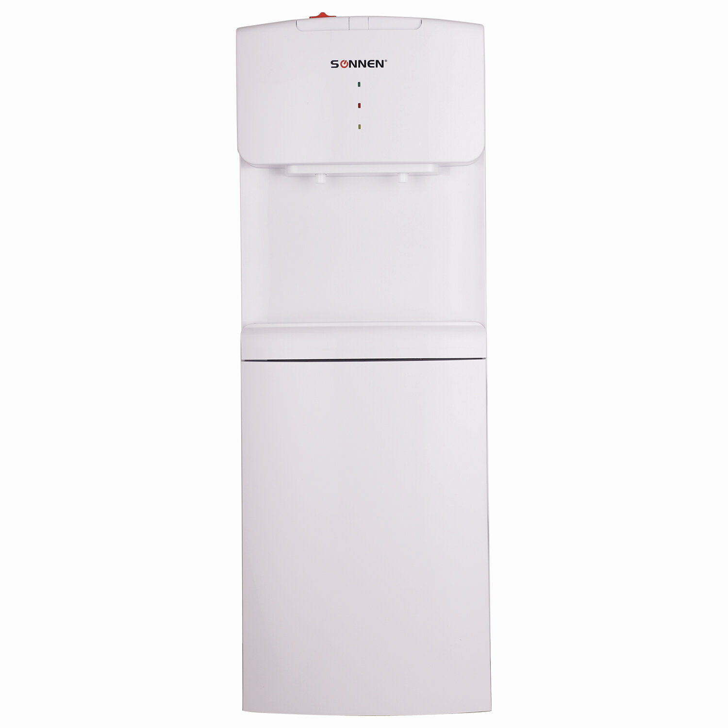 Кулер водораздатчик БЕЗ НАГРЕВА И ОХЛАЖДЕНИЯ, SONNEN FS-02N, напольный, 2 крана, белый Код товара: 454995 5 825,83 ₽ Купить Производитель:SONNEN Напольный кулер SONNEN FS-02N окажется незаменимым в офисе, дома, в школе, загородном доме благодаря простоте и удобству в использовании. Кулер SONNEN предназначен для раздачи воды комнатной температуры. Легок в обращении и содержании. Для использования необходимо поместить бутыль в специальное отверстие на верхней части водораздатчика. Данный кулер не оборудован функциями нагрева и охлаждения. Перед первым использованием необходимо слить около 0,5 л воды, чтобы очистить накопительный бак и трубки от скопившейся производственной пыли. Подача воды нажатием кнопки позволяет с легкостью наполнить любую емкость водой. В нижней части корпуса не предусмотрено дополнительное отделение для хранения, что позволяет держать привлекательную цену.Производство: КитайТип установки: напольныйТип охлаждения: без охлажденияПодача воды комнатной температуры: даКоличество кранов подачи воды: 2 шт. Серия: FSРекомендуемое количество пользователей: 25Размещение бутыли с водой: верхняя загрузкаТип крана: клавишиТип нагревательного элемента: Нет данныхЗащита от протечек воды: даОбъем шкафчика: 0 лМатериал корпуса: пластик/металлЦвет корпуса: белыйВысота: 878 ммШирина: 300 ммГлубина: 310 ммВес: 4.25 кгРазмер упаковки: 89 × 33 × 33.5 смОбъём: 0.0984 м3Промежуточная упаковка: 1 штТранспортная упаковка: 1 штШтрих-код: 4606224264721 Сертификат-1.jpg Сертификат-2.jpg