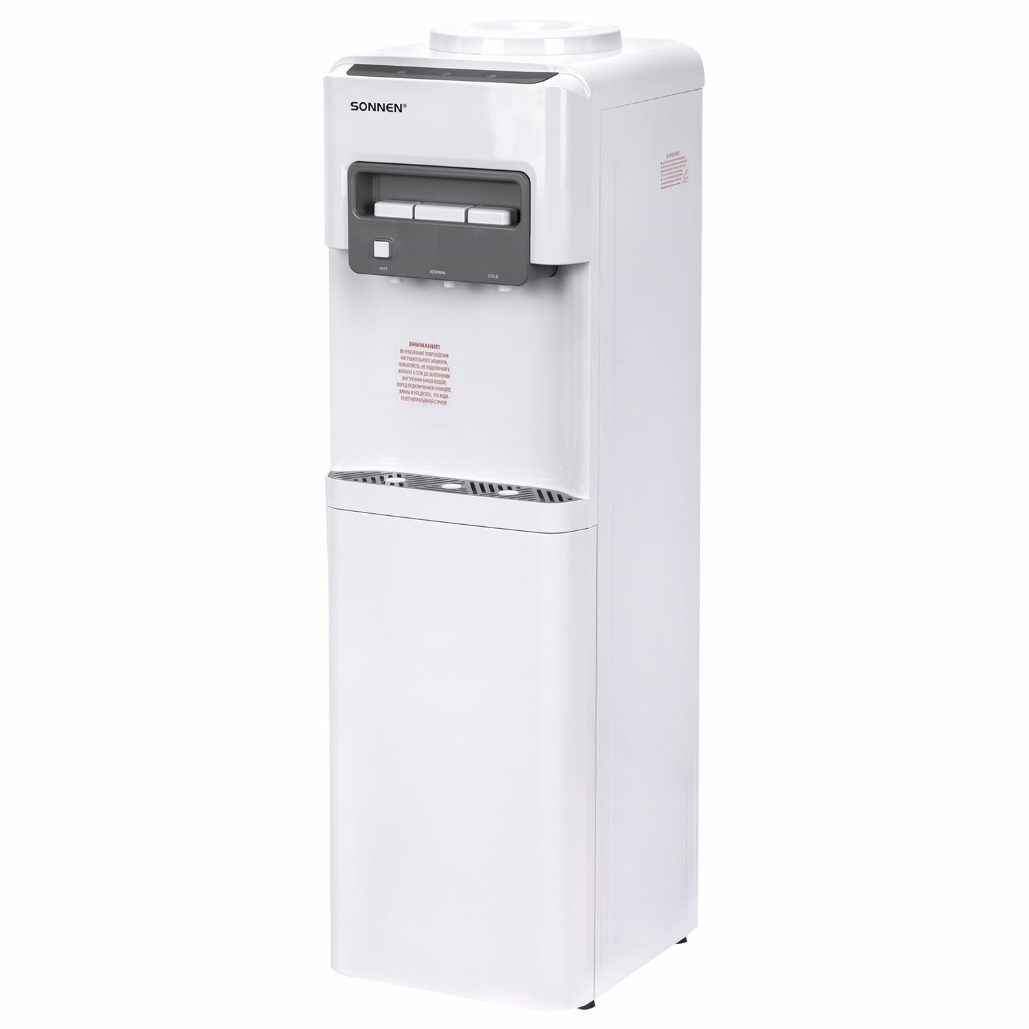 Кулер для воды SONNEN FSC-03AC, напольный, НАГРЕВ/ОХЛАЖДЕНИЕ КОМПРЕССОР, шкаф, 3 крана, белый Код товара: 455419 13 398,85 ₽ Купить Производитель:SONNEN Напольный кулер SONNEN FSC-03AC обеспечит питьевой холодной и горячей водой сотрудников и посетителей предприятий, офисов и других организаций. Вода нагревается с помощью ТЭНа мощностью 500 Вт, что позволяет достичь температуры 95 °С за считаные минуты. Компрессорное охлаждение мощностью 85 Вт обеспечивает поддержание температуры холодной воды на уровне 10 °С. Кулер предназначен для напольного размещения и имеет 3 крана типа "клавиша" для подачи горячей, холодной и воды комнатной температуры. Кулер оснащен функцией "Защита от детей", которая предотвращает случайную подачу горячей воды. Чтобы налить горячую воду, необходимо, удерживая фиксатор, нажать нужную кнопку. Также кулер имеет защиту от протечек воды. На верхней части корпуса находится индикаторы нагрева, охлаждения и работы устройства. В нижней части корпуса кулера находится шкафчик объемом 14 л, который можно использовать для хранения посуды, салфеток и других нужных вещей. Для использования кулера необходимо поместить бутыль в специальное отверстие в верхней части диспенсера. Перед первым использованием необходимо слить около 1 литра воды, чтобы очистить накопительный бак и трубки от скопившейся производственной пыли. Для нагревания требуется в разы меньше электроэнергии, чем для нагревания самого обычного электрического чайника. Благодаря тому, что высокая температура воды в кулере поддерживается постоянно, больше не нужно будет ждать, пока он нагреется, что особенно важно для крупных компаний с большим количеством сотрудников и посетителей.Производство: КитайТип установки: напольныйТип охлаждения: компрессорныйПодача воды с нагревом: даПодача воды с охлаждением: даПодача воды комнатной температуры: даКоличество кранов подачи воды: 3 шт. Серия: FSCРекомендуемое количество пользователей: 15Наличие встроенного отделения для хранения: шкафчикРазмещение бутыли с водой: верхняя загрузкаТип крана: клавишиМощность нагрева: 500 ВтМощность охлаждения: 85 ВтПроизводительность нагрева: 5 л/часПроизводительность охлаждения: 2 л/часТемпература нагревания воды: 95 градусТемпература охлаждения воды: 10 градусЕмкость бака для горячей воды: 1.1 лЕмкость бака для холодной воды: 1 лТип нагревательного элемента: ТЭНЗащита от детей: даЗащита от протечек воды: даОбъем холодильника: 0 лОбъем шкафчика: 14 лНапряжение: 220 ВМатериал корпуса: пластик/металлЦвет корпуса: белый/серыйДлина шнура: 1.3 мВысота: 1010 ммШирина: 300 ммГлубина: 330 ммВес: 12.4 кгРазмер упаковки: 104 × 33.8 × 36.7 смОбъём: 0.129 м3Промежуточная упаковка: 1 штТранспортная упаковка: 1 штШтрих-код: 4606224365565 Файлы Сертификат-1.jpg Сертификат-2.jpg Сертификат-3.jpg Сертификат-4.jpg Сертификат-5.jpg Сертификат-6.jpg