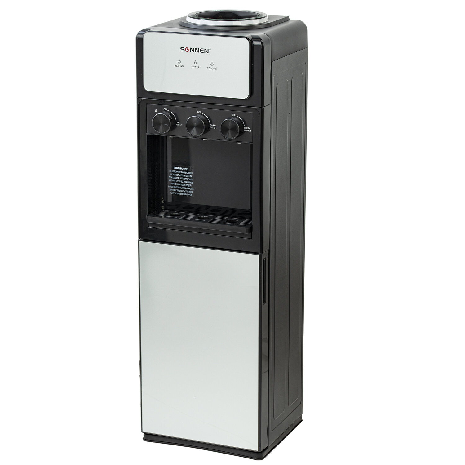 Кулер для воды SONNEN FSE-03Ri, напольный, НАГРЕВ/ОХЛАЖДЕНИЕ ЭЛЕКТРОННОЕ, 3 крана, шкаф Код товара: 455743 8 836,92 ₽ Купить Производитель:SONNEN Кулер для воды SONNEN FSE-03Ri – удобное и лаконичное решение для обеспечения питьевой водой в общественном месте и офисе. Устройство изготовлено из прочных и безопасных материалов. Корпус выполнен из высококачественного пластика с металлическими сторонами по бокам и стеклянной панелью на передней стороне устройства. Кулер с верхней загрузкой бутыли оснащен шкафчиком в нижней части корпуса. Он прост в использовании, имеет три поворотных крана для подачи горячей, холодной, а также воды комнатной температуры. Вода нагревается с помощью ТЭНа мощностью 500 Вт, что позволяет достичь температуры 90 °С за считанные минуты. Модуль электронного охлаждения мощностью 70 Вт обеспечивает поддержание температуры холодной воды на уровне 15 °С. Также изделие оборудовано функцией "Защита от детей" на кране подачи горячей воды. Кулер оснащен LED-индикаторами на стеклянной панели, которые оповещают о нагреве, охлаждении и работе устройства. Для использования кулера необходимо поместить бутыль в специальное отверстие в верхней части устройства. Перед первым использованием необходимо слить около 1 л воды, чтобы очистить накопительный бак и трубки от скопившейся производственной пыли. Благодаря тому, что высокая температура воды в кулере поддерживается постоянно, больше не нужно ждать, пока он нагреется, что особенно важно для крупных компаний с большим количеством сотрудников и посетителей.Производство: КитайТип установки: напольныйТип охлаждения: электронныйПодача воды с нагревом: даПодача воды с охлаждением: даПодача воды комнатной температуры: даКоличество кранов подачи воды: 3 шт. Серия: FSEРекомендуемое количество пользователей: 10Наличие встроенного отделения для хранения: шкафчикКрепление стаканодержателя: крепление винтами, крепление магнитомРазмещение бутыли с водой: верхняя загрузкаТип крана: поворотный кран подачи водыМощность нагрева: 500 ВтМощность охлаждения: 70 ВтПроизводительность нагрева: 5 л/часПроизводительность охлаждения: 0.5 л/часТемпература нагревания воды: 90 градусТемпература охлаждения воды: 15 градусЕмкость бака для горячей воды: 0.8 лЕмкость бака для холодной воды: 0.4 лТип нагревательного элемента: ТЭНЗащита от протечек воды: даОбъем холодильника: 0 лОбъем шкафчика: 16 лНапряжение: 220 ВМатериал корпуса: металл/стекло/пластикЦвет корпуса: черныйДлина шнура: 1.2 мВысота: 950 ммШирина: 280 ммГлубина: 300 ммВес: 9 кгРазмер упаковки: 32 × 100.6 × 35 смОбъём: 0.1127 м3Промежуточная упаковка: 1 штТранспортная упаковка: 1 штШтрих-код: 4606224365589 Файлы Сертификат-1.jpg Сертификат-2.jpg Сертификат-3.jpg Сертификат-4.jpg Сертификат-5.jpg