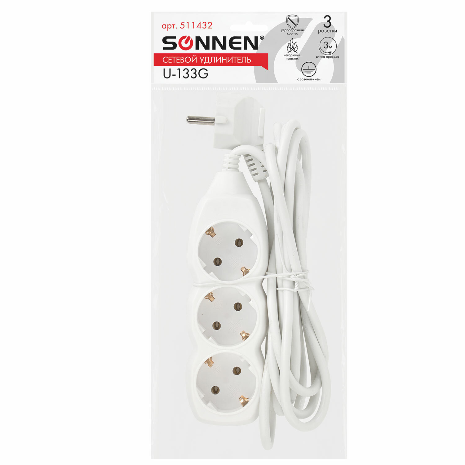 Удлинитель сетевой SONNEN U-133G, 3 розетки, c заземлением, 10 А, 3 м, белый Код товара: 511432 498,25 ₽ Купить Производитель:SONNEN Высококачественный удлинитель SONNEN U-133G предназначен для использования в быту, в офисе, на даче для подключения электроприборов различного назначения: осветительные приборы, бытовая техника, электроинструмент. Сетевой удлинитель в пластиковом корпусе оснащен 3 евророзетками без заземления. Максимальный ток нагрузки – 6 А. В сочетании эти параметры позволяют безопасно подключать к удлинителю до 3 электроприборов. Длина кабеля – 3 метра, что позволит использовать удлинитель как внутри помещения, так и снаружи. Рабочая частота модели составляет 50 Гц, а напряжение – 220 В. Эти показатели являются стандартными для такого типа устройств. Корпус удлинителя изготовлен из прочного негорючего ABS-пластика, что делает эксплуатацию безопасной. Толщина жил провода – 2х0,75 мм. Габариты - 150х50х40 мм, вес – 0,29 кг. Жилы провода нашего удлинителя изготовлены из 100% меди, что повышает его эксплуатационные свойства в сравнении с алюмомедным проводом: • Высокая электропроводность. • Механическая прочность и гибкость. • Долговечность и устойчивость к коррозии – медь обладает высокой устойчивостью к коррозионным процессам и окислению. Даже при образовании оксидной плёнки на поверхности медного проводника она не приводит к значительному увеличению контактного сопротивления, как это происходит с алюминием. • Сопротивление нагреву – благодаря низкому электрическому сопротивлению и высокой теплопроводности медные кабели меньше нагреваются при прохождении электрического тока. Производитель сохраняет за собой право на внесение изменений в технические характеристики, комплектацию и конструкцию данной модели для улучшения эксплуатационных свойств без предварительного уведомления.Производство: КитайТип устройства: удлинительКоличество розеток: 3 шт.Длина шнура: 3 мМаксимальный ток нагрузки: 10 АСуммарная мощность нагрузки: 2200 ВтНоминальное напряжение: 220 ВНоминальная частота напряжения сети: 50 ГцНаличие заземления: даПодключение: к розеткам евростандартаСечение провода: 3х0,75 ммСтепень защиты: IP20Крепление на стену: даМатериал корпуса: негорючий пластикЦвет: белыйСерия: U-1Длина: 150 ммШирина: 50 ммВысота: 40 ммВес: 0.37 кгРазмер упаковки: 6.1 × 21.6 × 9.7 смОбъём: 0.0012 м3Промежуточная упаковка: 20 штТранспортная упаковка: 20 штШтрих-код: 4606224103631 Файлы Сертификат-1.jpg Сертификат-2.jpg Сертификат-3.jpg Сертификат-4.jpg