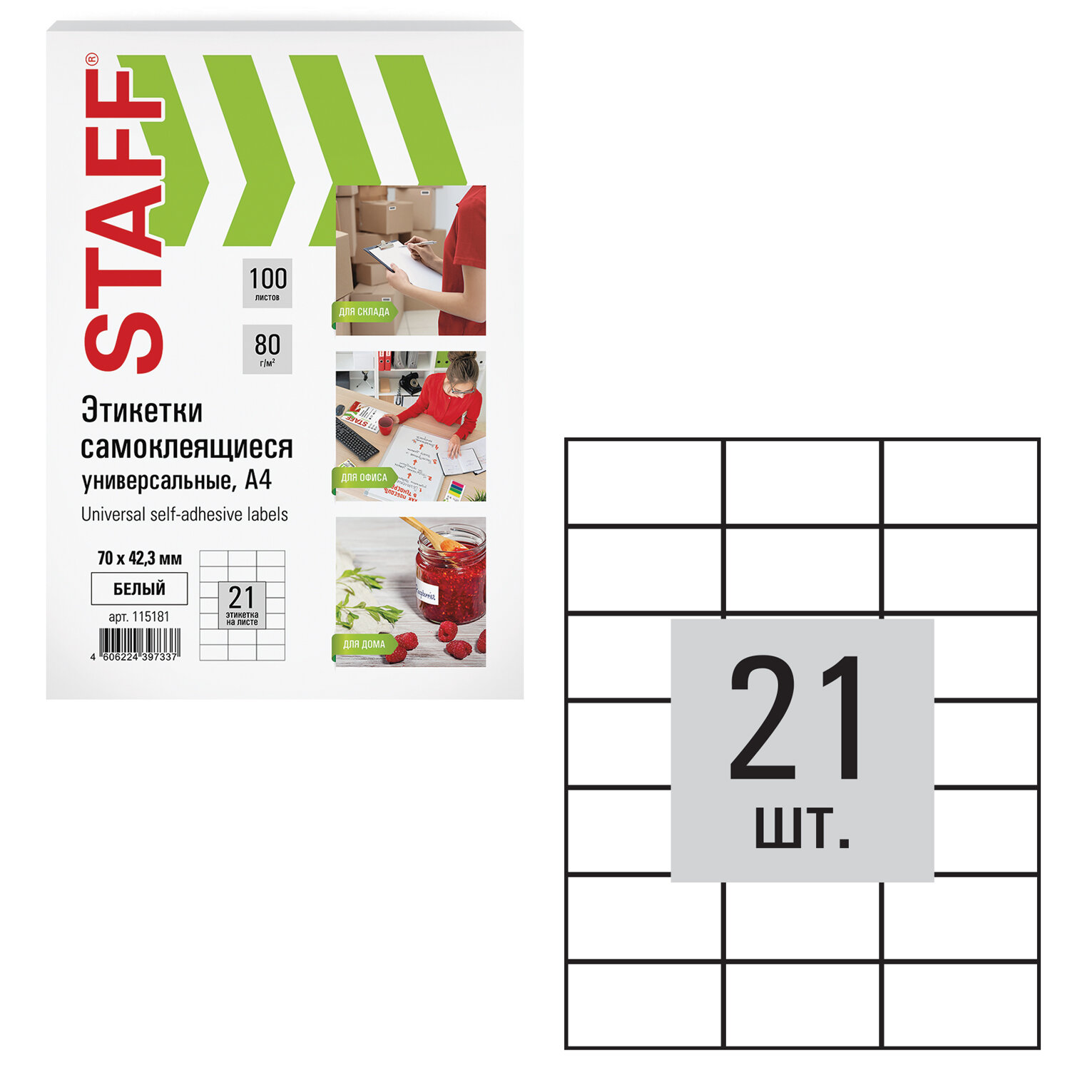 Этикетка самоклеящаяся 70х42,3 мм, 21 этикетка, белая, 80 г/м2, 100 листов, STAFF Код товара: 115181 872,46 ₽ Купить Производитель:STAFF Универсальные самоклеящиеся этикетки STAFF позволят быстро и качественно подготовить адресные наклейки, регистрационные номера, аннотации при помощи лазерного или струйного принтера. Изготовлены из матовой бумаги белого цвета плотностью 80 г/м2. Картонная упаковка содержит 100 листов формата А4, на каждом листе – двадцать одна этикетка размером 70х42,3 мм. Для организации печати этикеток можно также использовать наш шаблон. Чтобы увидеть разлиновку шаблона, необходимо в ПО Microsoft Word открыть вкладку «Макет» и щелкнуть «Отобразить сетку».Производство: РоссияКоличество этикеток на листе: 21 шт.Размер этикетки (ДхШ): 70х42,3 ммФорма: прямоугольнаяКоличество листов в упаковке: 100 шт.Технология печати: для лазерной печати, для струйной печатиСерия: UNIVERSALПлотность: 80 г/м2Тип поверхности: матоваяЦвет этикетки: белыйСпецэффект цвета: нетВес: 1,14 кгРазмер упаковки: 2.3 × 30.4 × 21.5 смОбъём: 0.0014 м3Промежуточная упаковка: 10 штТранспортная упаковка: 10 штШтрих-код: 4606224397337 Файлы Приложение-1.docx Сертификат-1.jpg Сертификат-2.jpg Сертификат-3.jpg Сертификат-4.jpg Сертификат-5.jpg Сертификат-6.jpg Сертификат-7.jpg Сертификат-8.jpg Сертификат-9.jpg Сертификат-10.jpg Сертификат-11.jpg Сертификат-12.jpg Сертификат-13.jpg Сертификат-14.jpg Сертификат-15.jpg Сертификат-16.jpg Сертификат-17.jpg Сертификат-18.jpg Сертификат-19.jpg Сертификат-20.jpg Сертификат-21.jpg Сертификат-22.jpg Сертификат-23.jpg Сертификат-24.jpg Сертификат-25.jpg Сертификат-26.jpg