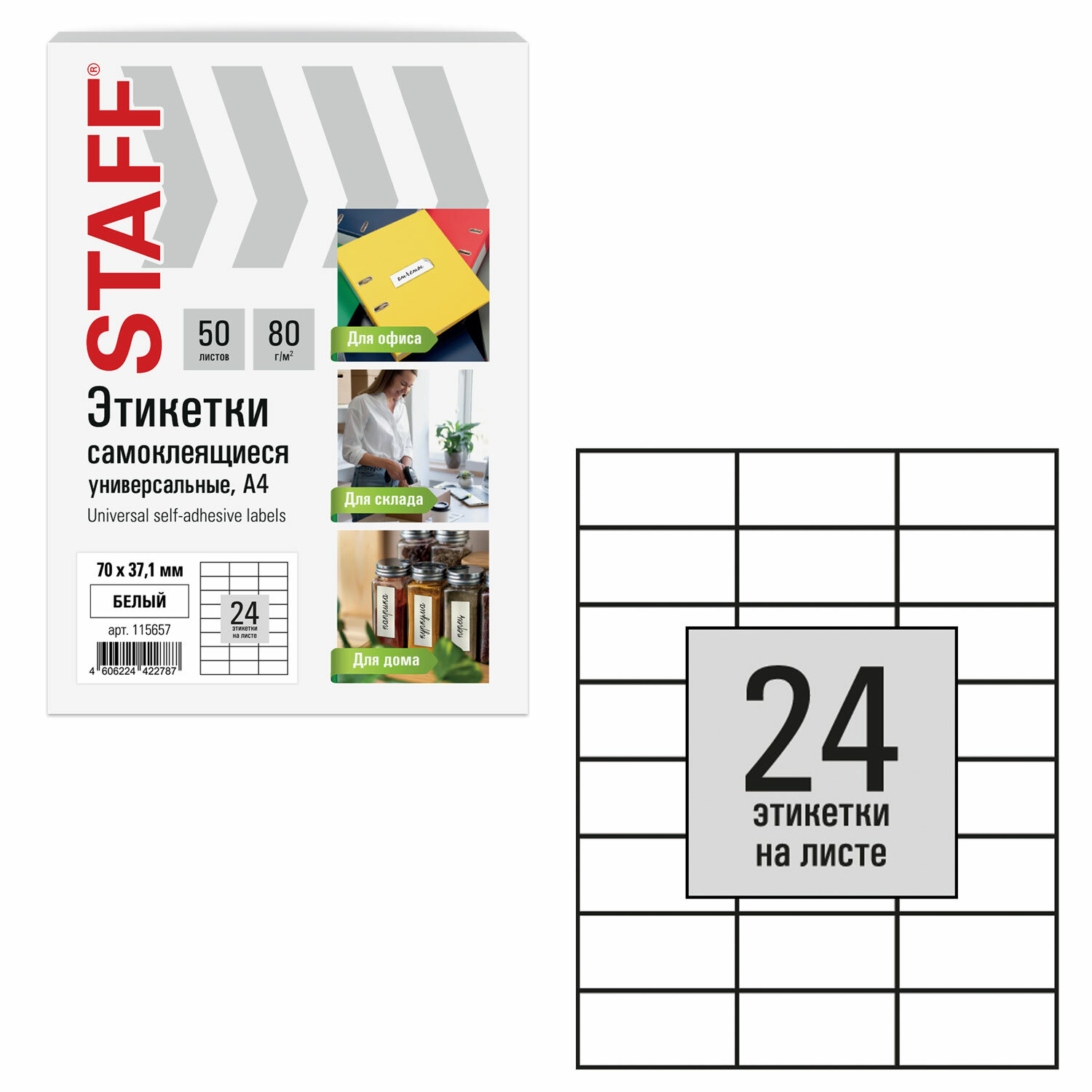 Этикетка самоклеящаяся 70х37,1 мм, 24 этикетки, белая, 80 г/м2, 50 листов, STAFF BASIC Код товара: 115657 450,53 ₽ Купить Производитель:STAFF Универсальные самоклеящиеся этикетки STAFF позволят быстро и качественно подготовить адресные наклейки, регистрационные номера, аннотации при помощи лазерного или струйного принтера. Изготовлены из самоклеящейся матовой бумаги плотностью 80 г/м2. Надежно приклеиваются к поверхности любой формы и материала. Картонная упаковка содержит 50 листов формата А4, на каждом листе – 24 этикетки размером 70х37,1 мм.Производство: КитайКоличество этикеток на листе: 24 шт.Размер этикетки (ДхШ): 70х37,1 ммФорма: прямоугольнаяКоличество листов в упаковке: 50 шт.Технология печати: для лазерной печати, для струйной печатиСерия: UNIVERSAL BASICПлотность: 80 г/м2Тип поверхности: матоваяЦвет этикетки: белыйСпецэффект цвета: нетШаблон для скачивания: даВес: 539 грРазмер упаковки: 1 × 30.1 × 21.7 смОбъём: 0.0009 м3Промежуточная упаковка: 20 штТранспортная упаковка: 20 штШтрих-код: 4606224422787 Файлы Приложение-1.docx Сертификат-1.jpg Сертификат-2.jpg Сертификат-3.jpg Сертификат-4.jpg Сертификат-5.jpg Сертификат-6.jpg Сертификат-7.jpg Сертификат-8.jpg Сертификат-9.jpg Сертификат-10.jpg Сертификат-11.jpg Сертификат-12.jpg Сертификат-13.jpg Сертификат-14.jpg Сертификат-15.jpg Сертификат-16.jpg Сертификат-17.jpg Сертификат-18.jpg Сертификат-19.jpg Сертификат-20.jpg Сертификат-21.jpg Сертификат-22.jpg Сертификат-23.jpg Сертификат-24.jpg Сертификат-25.jpg Сертификат-26.jpg