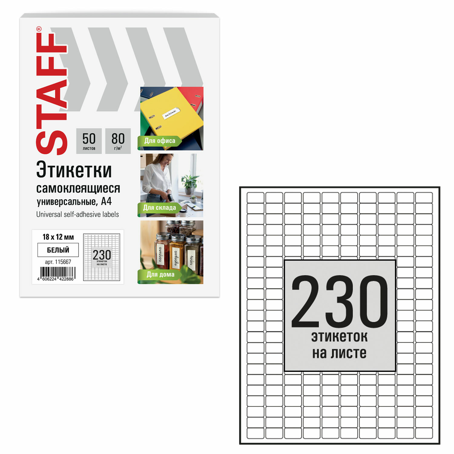 Этикетка самоклеящаяся 18х12 мм, 230 этикеток, белая, 80 г/м2, 50 листов, STAFF BASIC Код товара: 115667 450,53 ₽ Купить Производитель:STAFF Универсальные самоклеящиеся этикетки STAFF позволят быстро и качественно подготовить адресные наклейки, регистрационные номера, аннотации при помощи лазерного или струйного принтера. Изготовлены из самоклеящейся матовой бумаги плотностью 80 г/м2. Надежно приклеиваются к поверхности любой формы и материала. Картонная упаковка содержит 50 листов формата А4, на каждом листе – 230 этикеток размером 18х12 мм.Производство: КитайКоличество этикеток на листе: 230 шт.Размер этикетки (ДхШ): 18х12 ммФорма: прямоугольнаяКоличество листов в упаковке: 50 шт.Технология печати: для лазерной печати, для струйной печатиСерия: UNIVERSAL BASICПлотность: 80 г/м2Тип поверхности: матоваяЦвет этикетки: белыйСпецэффект цвета: нетШаблон для скачивания: даВес: 536 грРазмер упаковки: 1 × 30.1 × 21.8 смОбъём: 0.0009 м3Промежуточная упаковка: 20 штТранспортная упаковка: 20 штШтрих-код: 4606224422886 Файлы Приложение-1.docx Сертификат-1.jpg Сертификат-2.jpg Сертификат-3.jpg Сертификат-4.jpg Сертификат-5.jpg Сертификат-6.jpg Сертификат-7.jpg Сертификат-8.jpg Сертификат-9.jpg Сертификат-10.jpg Сертификат-11.jpg Сертификат-12.jpg Сертификат-13.jpg Сертификат-14.jpg Сертификат-15.jpg Сертификат-16.jpg Сертификат-17.jpg Сертификат-18.jpg Сертификат-19.jpg Сертификат-20.jpg Сертификат-21.jpg Сертификат-22.jpg Сертификат-23.jpg Сертификат-24.jpg Сертификат-25.jpg Сертификат-26.jpg