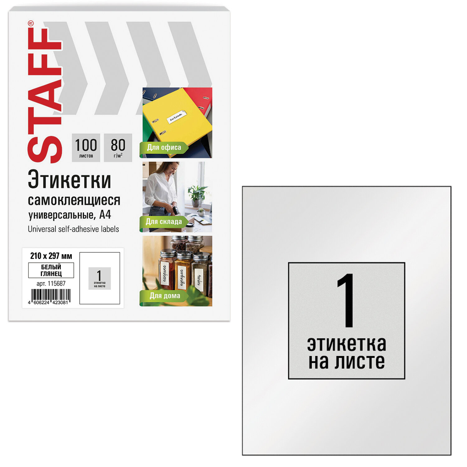 Этикетка самоклеящаяся ГЛЯНЦЕВАЯ 210х297 мм, 1 этикетка, белая, 80 г/м2, 100 л., STAFF BASIC Код товара: 115687 945,08 ₽ Купить Производитель:STAFF Универсальные самоклеящиеся этикетки STAFF позволят быстро и качественно подготовить адресные наклейки, регистрационные номера, аннотации при помощи лазерного или струйного принтера. Изготовлены из самоклеящейся глянцевой бумаги плотностью 80 г/м2. Надежно приклеиваются к поверхности любой формы и материала. Картонная упаковка содержит 100 листов формата А4, на каждом листе – одна этикетка размером 210х297 мм.Производство: КитайКоличество этикеток на листе: 1 шт.Размер этикетки (ДхШ): 210х297 ммФорма: прямоугольнаяКоличество листов в упаковке: 100 шт.Технология печати: для лазерной печати, для струйной печатиПлотность: 80 г/м2Тип поверхности: глянцеваяЦвет этикетки: белыйСпецэффект цвета: нетШаблон для скачивания: даВес: 978 грРазмер упаковки: 1.2 × 30.2 × 22 смОбъём: 0.0013 м3Промежуточная упаковка: 10 штТранспортная упаковка: 10 штШтрих-код: 4606224423081 Файлы Сертификат-1.jpg Сертификат-2.jpg Сертификат-3.jpg Сертификат-4.jpg Сертификат-5.jpg Сертификат-6.jpg Сертификат-7.jpg Сертификат-8.jpg Сертификат-9.jpg Сертификат-10.jpg Сертификат-11.jpg Сертификат-12.jpg Сертификат-13.jpg Сертификат-14.jpg Сертификат-15.jpg Сертификат-16.jpg Сертификат-17.jpg Сертификат-18.jpg Сертификат-19.jpg Сертификат-20.jpg Сертификат-21.jpg Сертификат-22.jpg Сертификат-23.jpg Сертификат-24.jpg Сертификат-25.jpg Сертификат-26.jpg