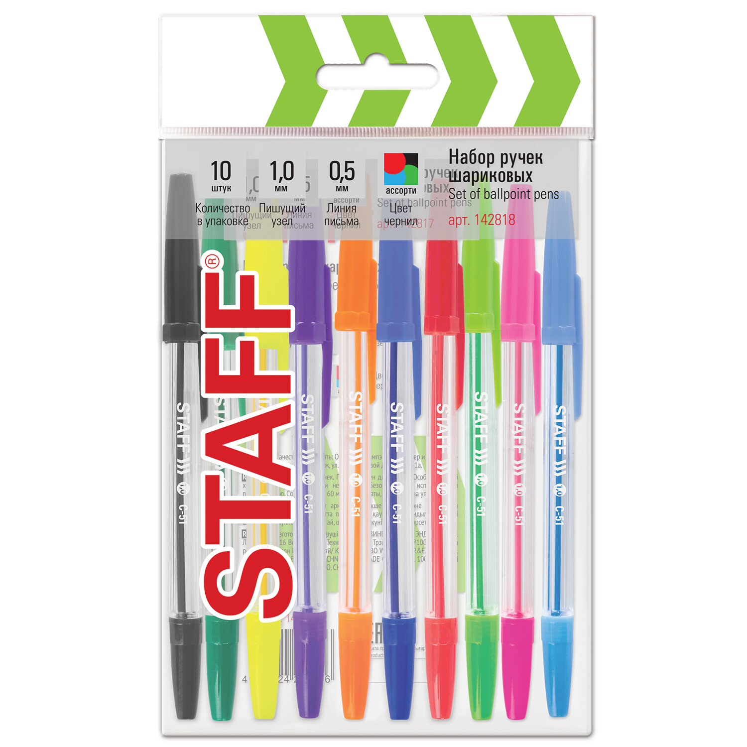 Ручки шариковые STAFF "C-51", НАБОР 10 шт., АССОРТИ, узел 1 мм, линия письма 0,5 мм Код товара: 142818 96,52 ₽ Купить Производитель:STAFF Шариковые ручки STAFF "C-51" - надежный и долговечный предмет для ежедневного использования. Набор из 10 штук в прозрачном корпусе с деталями в цвет чернил. Сменный стержень длиной 137 мм. Диаметр пишущего узла 1,0 мм создает тонкую инию письма 0,5 мм. В наборе 10 цветов: красный, зеленый, синий, черный, желтый, фиолетовый, светло-зеленый, голубой, розовый, оранжевый. Увеличенная длина письма. Лаконичный дизайн соответствует офисному стилю.Производство: КитайЦвет чернил: ассортиКоличество в комплекте: 10 шт.Толщина линии письма: 0.5 ммДиаметр пишущего узла: 1 ммФорма наконечника: стандартныйДлина сменного стержня: 137 ммСерия: C-51Стиль: школьнаяТовар относится к сегменту ЭКОНОМ: даЦвет корпуса: прозрачныйДлина письма: 1000 мДизайн: без дизайнаФорма корпуса: шестиграннаяПокрытие корпуса: без дополнительного покрытияУпаковка: пакет с европодвесомСрок годности: 60 месВес: 46 грРазмер упаковки: 1 × 15.4 × 11.3 смОбъём: 0.0002 м3Промежуточная упаковка: 96 штТранспортная упаковка: 192 штШтрих-код: 4606224204376 Сертификат-1.jpg Сертификат-2.jpg Сертификат-3.jpg