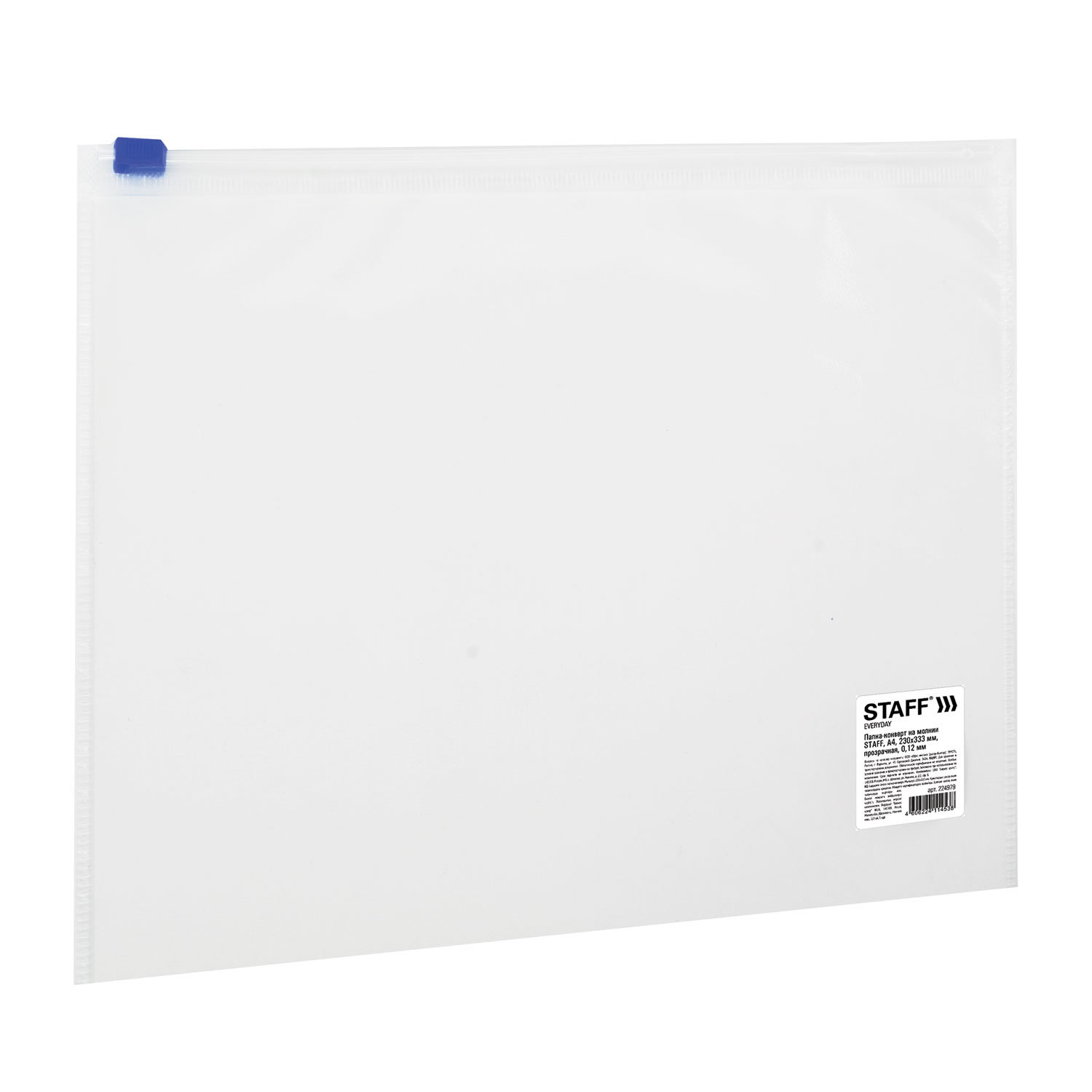Папка-конверт на молнии А4 (230х333 мм), прозрачная, 0,12 мм, STAFF Код товара: 224979 59,64 ₽ Купить Производитель:STAFF Папка-конверт на молнии STAFF незаменима для хранения и транспортировки документов. Изготовлена из прочного прозрачного пластика толщиной 0,12 мм с гладкой фактурой. Формат А4 (333х230 мм). Герметичная застежка-зиплок защищает документы от механических повреждений, а также пыли и влаги. Цвет молнии - ассорти (поставляется без возможности выбора).Производство: РоссияФормат: A4Фактура: гладьКоличество отделений: 1 шт.Застежка: молнияЦвет: прозрачныйЦвет молнии: ассортиВысота: 333 ммШирина: 230 ммТолщина пластика: 120 мкмМатериал: полипропиленВес: 18 грРазмер упаковки: 0.2 × 33.8 × 24 смОбъём: 0.0001 м3Промежуточная упаковка: 20 штТранспортная упаковка: 300 штШтрих-код: 4606224114538 Файлы Сертификат-1.jpg Сертификат-2.jpg Сертификат-3.jpg Сертификат-4.jpg
