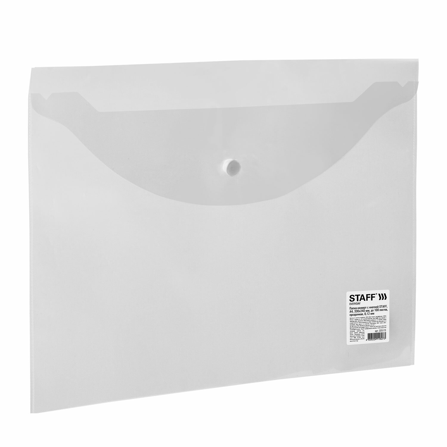 Папка-конверт с кнопкой STAFF, А4, до 100 листов, прозрачная, 0,12 мм Код товара: 225173 29,94 ₽ Купить Производитель:STAFF Папка с кнопкой STAFF предназначена для хранения, транспортировки и защиты документов и мелких предметов от негативных внешних факторов. Незаменима для школьников, студентов, офисных работников и творческих людей. Изготовлена из прозрачного пластика толщиной 120 мкм. Папка-конверт с гладкой фактурой формата А4 закрывается на защелку-кнопку, что делает удобным частое использование и обеспечивает быстрый доступ к ее содержимому. Папка способна вместить до 100 листов стандартной плотности.Производство: РоссияФормат: А4Ориентация: горизонтальнаяВмещает до: 100 листовФактура: гладкаяТип пластика: прозрачныйСерия: StandardДизайн: прозрачныйКоличество в комплекте: 1 шт.Толщина пластика: 120 мкмТип замка: кнопкаЦвет: прозрачныйВысота: 240 ммШирина: 330 ммГлубина: 3 ммМатериал: полипропиленВес: 20 грРазмер упаковки: 0.4 × 33.4 × 26.4 смОбъём: 0.0003 м3Промежуточная упаковка: 25 штТранспортная упаковка: 100 штШтрих-код: 4606224116273 Файлы Сертификат-1.jpg Сертификат-2.jpg Сертификат-3.jpg Сертификат-4.jpg Сертификат-5.jpg Сертификат-6.jpg Сертификат-7.jpg Сертификат-8.jpg Сертификат-9.jpg Сертификат-10.jpg Сертификат-11.jpg Сертификат-12.jpg Сертификат-13.jpg Сертификат-14.jpg Сертификат-15.jpg Сертификат-16.jpg Сертификат-17.jpg Сертификат-18.jpg Сертификат-19.jpg Сертификат-20.jpg Сертификат-21.jpg Сертификат-22.jpg Сертификат-23.jpg Сертификат-24.jpg Сертификат-25.jpg Сертификат-26.jpg