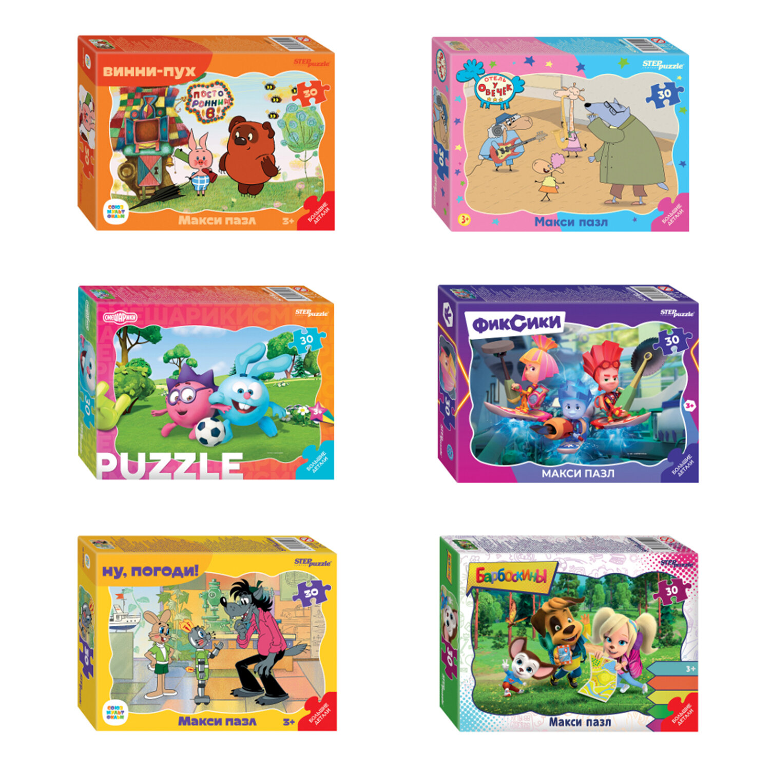 Пазл картонный 30 элементов, "МАКСИ-ПАЗЛЫ", АССОРТИ, поле 27х18 см Код товара: 667427 160,67 ₽ Купить Производитель:STEP PUZZLE МАКСИ-ПАЗЛЫ созданы специально для самых маленьких! Яркие, крупные детали абсолютно безопасны для малышей, а герои любимых мультфильмов не оставят никого равнодушным. Пазл представляет собой картинку, разделенную на 30 достаточно крупных деталей разной формы. Цель – собрать эти детали воедино, чтобы получилась цельное изображение. Такой пазл тренирует фантазию, логику, внимание и моторику.Производство: РоссияКоличество элементов: 30 шт.Форма: фигурнаяОриентация: горизонтальнаяШирина: 180 ммДлина: 270 ммПредназначение: универсальныйСерия: MaxiДизайн: АссортиМатериал: картонУпаковка: картонная коробкаВес: 93 грРазмер упаковки: 3.8 × 17.6 × 13.1 смОбъём: 0.0013 м3Промежуточная упаковка: 12 штТранспортная упаковка: 12 штШтрих-код: 4670175640033 Сертификат-1.jpg Сертификат-2.jpg