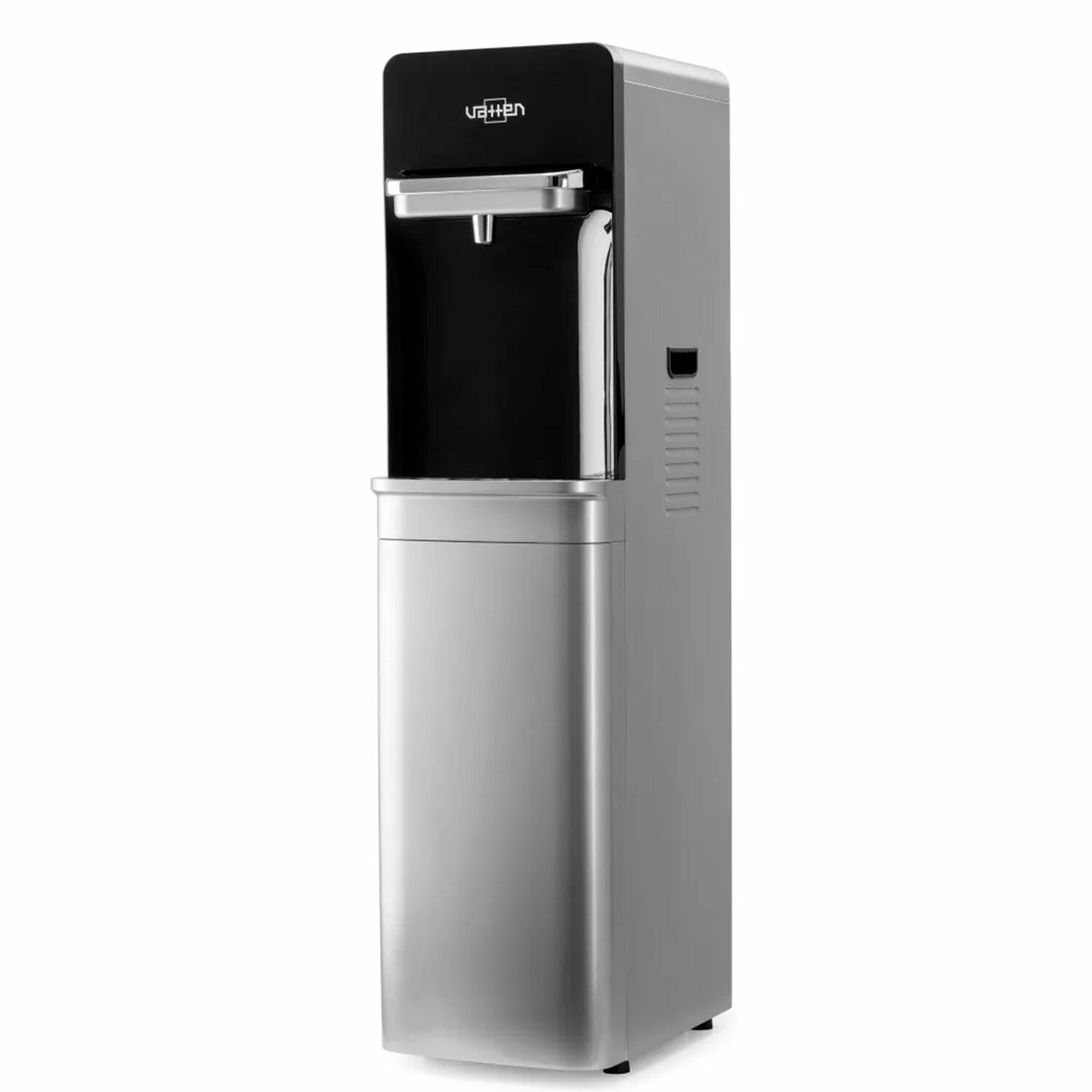 Кулер для воды VATTEN L06NK, напольный, НАГРЕВ/ОХЛАЖДЕНИЕ КОМПРЕССОР, бутыль снизу, 1 кран, сенсорное управление, серебристый Код товара: 458044 31 493,95 ₽ Купить Производитель:VATTEN Кулер для воды VATTEN L06NK идеально подойдёт для любого места с повышенными потребностями в горячей и холодной воде: больших офисов, коттеджей, отелей, террас, бассейнов. Кулер применим даже для полупрофессионального использования, например, в столовых, коктейль-барах, барах у бассейнов, небольших пляжных барах, небольших отелях. Благодаря стильному дизайну серебристого цвета устройство идеально впишется в любой интерьер. Увеличенная мощность нагрева (800 Вт) способна обеспечить производительность горячей воды до 9 литров в час. Это позволит обеспечить кипятком для заваривания чая или кофе офис с количеством сотрудников более 20 человек. Производительность по холодной воде – 2 литров в час при температуре до +10 °С. Объем накопительного бака для холодной воды – 3,2 литра. В кулере предусмотрены один кран с сенсорными кнопками горячей, комнатной и охлажденной воды. Кнопка горячей воды имеет фиксатор защиты от детей в виде дополнительной кнопки. Кулер исполнен по схеме с удобной нижней загрузкой бутыли. Приобретение такого кулера избавит вашу спину от напряжения при замене бутыли, поскольку нижний загрузочный отсек позволяет произвести замену, не отрывая бутыль от пола. А индикатор пустой бутыли всегда напомнит вам о необходимости замены (предусмотрен также звуковой сигнал). Всегда выключайте нагрев и охлаждение перед заменой бутыли! Подключайте аппарат к электросети только после заполнения его водой! Включение аппарата без воды может привести к его выходу из строя! Производитель оставляет за собой право без предварительного уведомления вносить изменения в технические характеристики, комплектацию и конструкцию, не ухудшающие эксплуатационные характеристики изделия.Производство: КитайТип установки: напольныйТип охлаждения: компрессорныйПодача воды с нагревом: даПодача воды с охлаждением: даПодача воды комнатной температуры: даКоличество кранов подачи воды: 1 шт. Серия: L06NKРекомендуемое количество пользователей: 20Крепление стаканодержателя: крепление винтами, крепление магнитомРазмещение бутыли с водой: нижнее размещениеТип крана: сенсорМощность нагрева: 800 ВтМощность охлаждения: 90 ВтПроизводительность нагрева: 9 л/часПроизводительность охлаждения: 2 л/часТемпература нагревания воды: 90 градусТемпература охлаждения воды: 10 градусЕмкость бака для горячей воды: 2 лЕмкость бака для холодной воды: 3.2 лИнформационный дисплей: даЗащита от детей: даОбъем шкафчика: 0 лНапряжение: 220 ВМатериал корпуса: пластикЦвет корпуса: серебристыйВысота: 1130 ммШирина: 280 ммГлубина: 430 ммВес: 16.59 кгРазмер упаковки: 119 × 44.2 × 33.2 смОбъём: 0.1746 м3Промежуточная упаковка: 1 штТранспортная упаковка: 1 штШтрих-код: 4630014934242 Файлы Приложение-1.pdf Сертификат-1.jpg Сертификат-2.jpg Сертификат-3.jpg Сертификат-4.jpg Сертификат-5.jpg Сертификат-6.jpg Сертификат-7.jpg Сертификат-8.jpg Сертификат-9.jpg