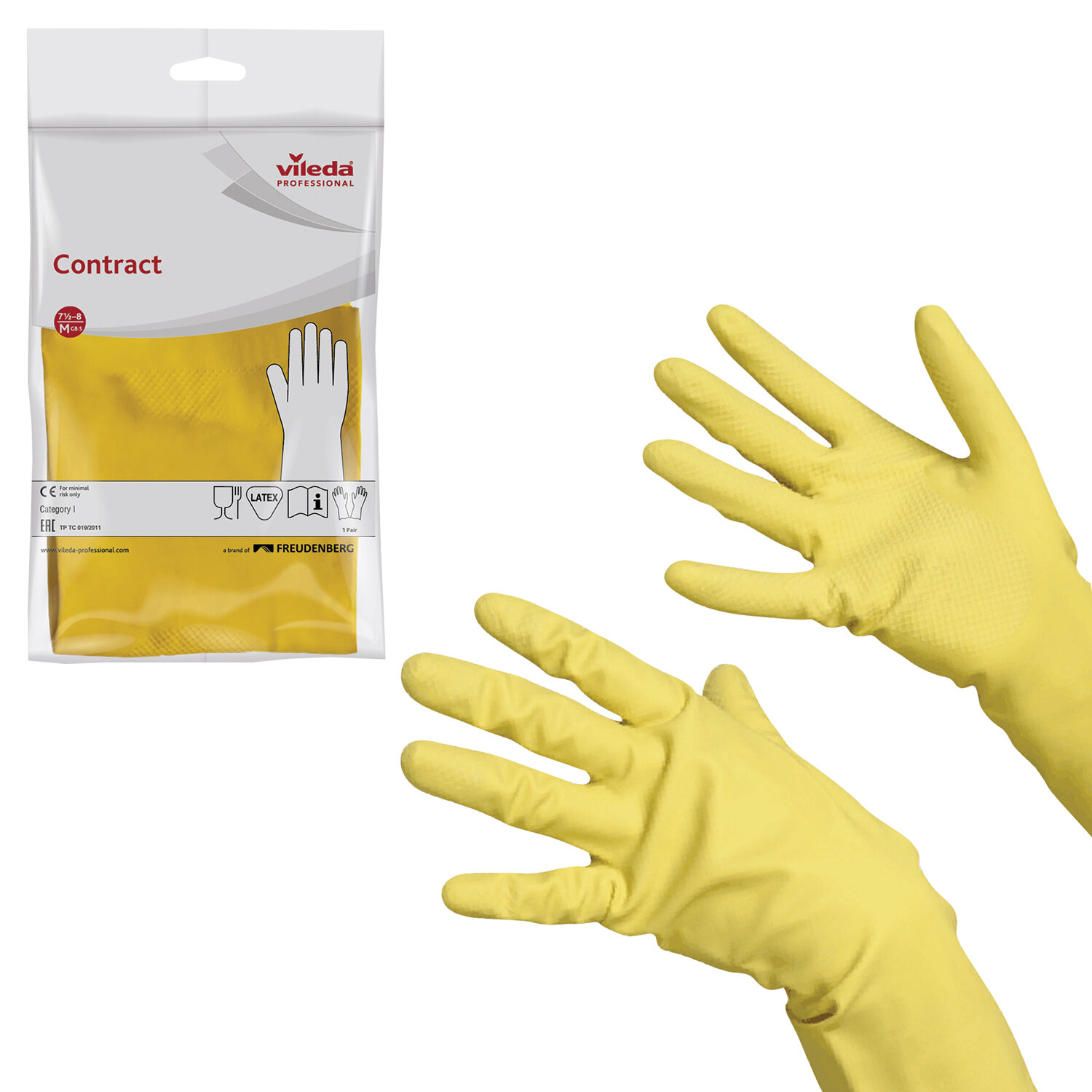 Перчатки МНОГОРАЗОВЫЕ резиновые VILEDA "Контракт", хлопчатобумажное напыление, размер 7,5-8, M (средний), желтые, вес 54 г Код товара: 602148 205,05 ₽ Купить Производитель:VILEDA Прочные перчатки для общей уборки из натурального латекса. Комфортные (внутри хлопковое покрытие), эластичные, долговечные. Повышенная чувствительность в области пальцев. Перчатки Контракт. Прочные перчатки для общей уборки из натурального латекса. Комфортные (внутри хлопковое покрытие), эластичные, долговечные. Повышенная чувствительность в области пальцев. Гигиена рук очень важна для профилактики кожных заболеваний и предотвращения риска заражения. Вот почему Vileda Professional изготавливает перчатки самого высокого качества, каждая пара которых проверяется, чтобы исключить брак. Ассортимент перчаток был разработан с тем условием, чтобы отвечать всем профессиональным потребностям, от простой чистки и стирки до работы с химическими средствами и растворителями. Особенности и преимущества: - защищают руки при работе с моющими средствами, - защищают руки от механических повреждений, - защищают от бактерий, возбудителей грибковых заболеваний и вирусов, - удобные и комфортные перчатки из натурального латекса, - плотные, эластичные и приятные на ощупь, - хлопковое напыление внутри для комфорта во время работы и легкого надевания и снятия перчатки, - рельефная сетчатая структура на ладонях и пальцах для надежного захвата, - ровный обрез манжеты, - не пахнут резиной, - можно стирать и сушить.Производство: Шри-ЛанкаЗащита от: химических воздействийРазмер: 7-8 (M)Размер производителя: 7,5-8 (M)Вид: хозяйственно-бытовыеМатериал основы: латексПокрытие внешнее: нетПодкладка: хлопковое напылениеСерия: МногоразовыеСтепень защиты от кислот: неприменимоСтепень защиты от щелочей: неприменимоПоверхность области захвата: рельефнаяКоличество в комплекте: 1 парДлина: 300 ммТолщина: 0.38 ммЦвет: желтыйВес: 63 грРазмер упаковки: 1.5 × 16.9 × 11.9 смОбъём: 0.0003 м3Промежуточная упаковка: 50 штТранспортная упаковка: 50 штШтрих-код: 4023103245051 Файлы Сертификат-1.jpg Сертификат-2.jpg Сертификат-3.jpg Сертификат-4.jpg Сертификат-5.jpg