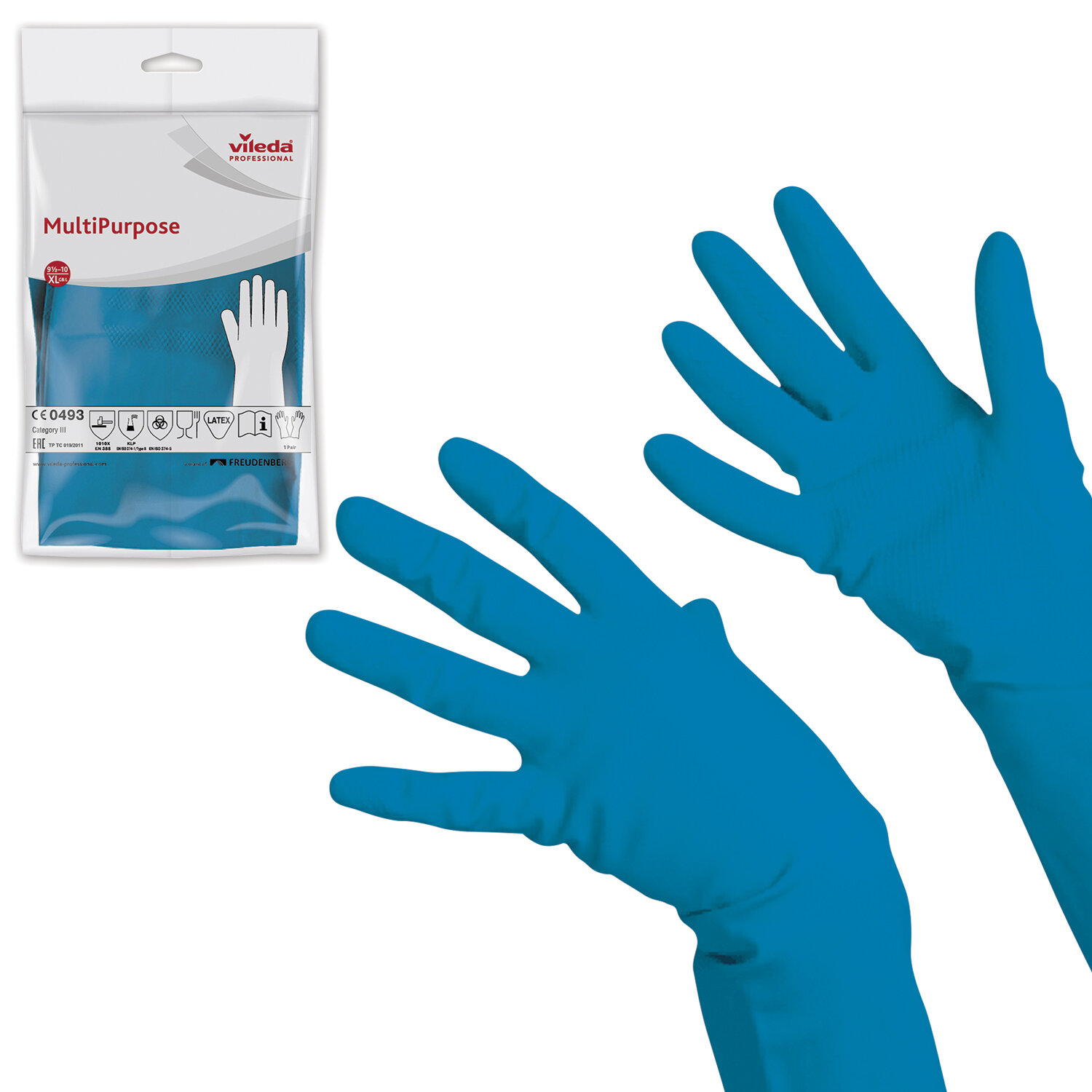 Перчатки МНОГОРАЗОВЫЕ резиновые VILEDA многоцелевые, х/б напыление, ПРОЧНЫЕ, размер 9,5-10, XL (очень большой), синие, вес 72 г Код товара: 602153 302,2 ₽ Купить Производитель:VILEDA Эластичные резиновые перчатки для общей уборки. Увеличенная толщина (на 40% толще обычных перчаток) и специальная обработка обеспечивают высокую прочность перчаток и надежную защиту рук. Внешняя сторона покрыта воском для надежного удержания предметов. Особенности и преимущества: - универсальное применение для различных задач, - высокая прочность натурального латекса и удобная анатомическая посадка для максимального комфорта, - износостойкие и долговечные, - хлопковое напыление для комфорта во время работы и легкого надевания и снятия перчатки, - плотные и эластичные, приятные на ощупь, - не имеют резкого и специфичного запаха резины, - рельефная сетчатая структура на ладонях и пальцах для надежного захвата, - аккуратный волнообразный обрез манжеты, - можно стирать и сушить.Производство: Шри-ЛанкаЗащита от: химических воздействийРазмер: 9-10 (XL)Размер производителя: 9,5-10 (XL)Вид: хозяйственно-бытовыеМатериал основы: латексПокрытие внешнее: нетПодкладка: хлопковое напылениеСерия: МногоразовыеСтепень защиты от кислот: неприменимоСтепень защиты от щелочей: неприменимоПоверхность области захвата: рельефнаяКоличество в комплекте: 1 парДлина: 300 ммТолщина: 0.4 ммЦвет: синийВес: 72 грРазмер упаковки: 1.3 × 19.2 × 12 смОбъём: 0.0003 м3Промежуточная упаковка: 50 штТранспортная упаковка: 50 штШтрих-код: 4023103245310 Сертификат-1.jpg Сертификат-2.jpg Сертификат-3.jpg