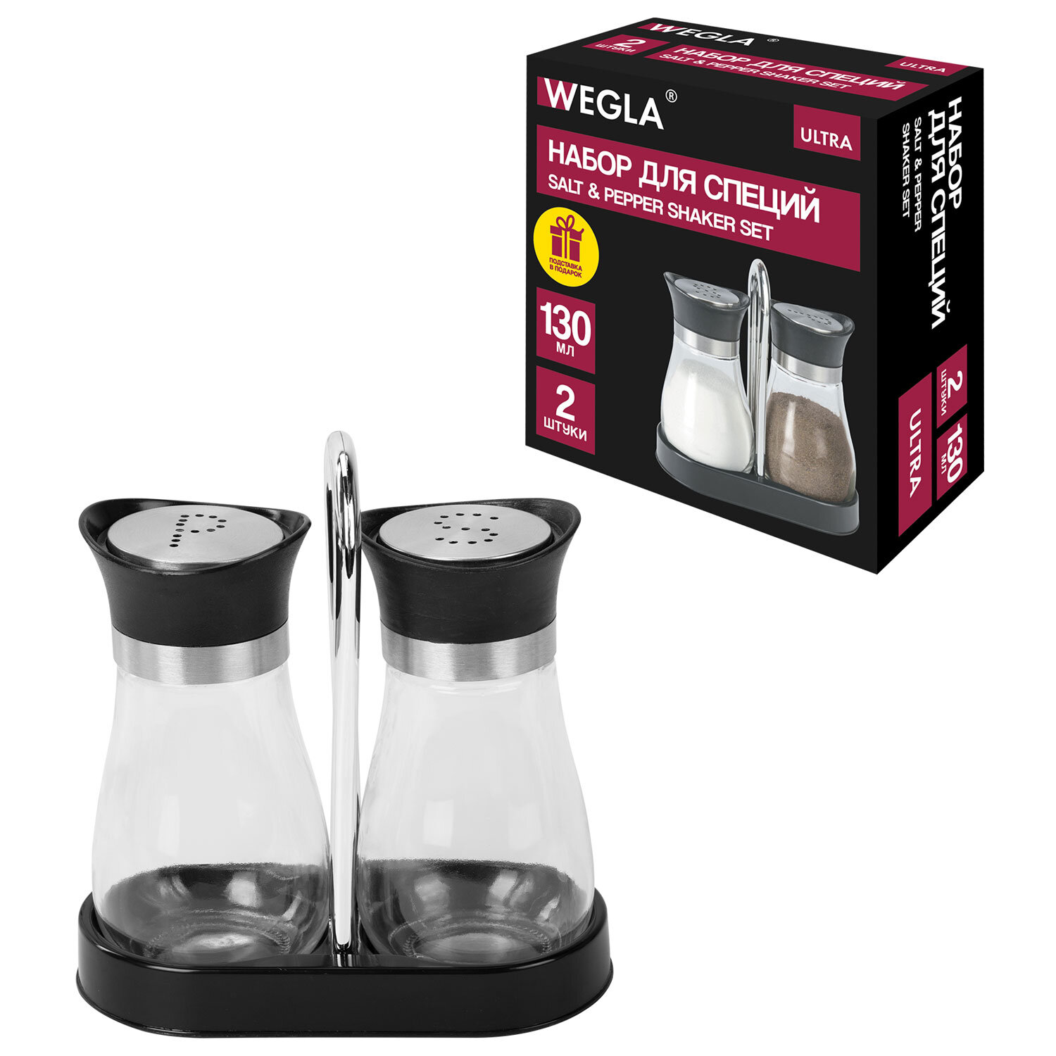 Набор для специй 2х130 мл, ULTRA, подставка + солонка + перечница, отверстия S/P, WEGLA (ВЕГЛА)