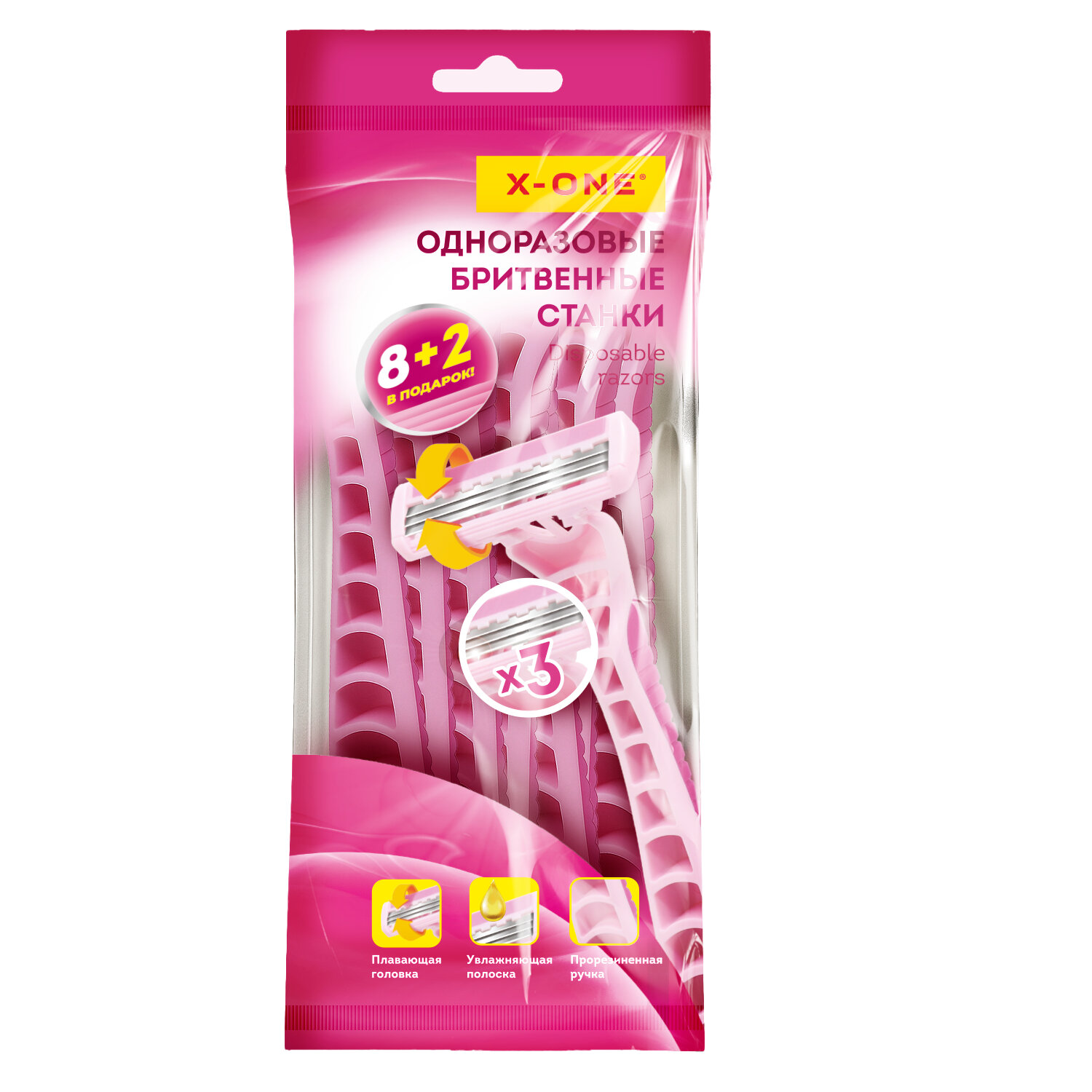 Бритвенные станки одноразовые, 3 лезвия, увлажняющая полоска, плавающая головка, 10 шт., розовый, X-ONE (ИКС-УАН) Код товара: 700035 239,4 ₽ Купить Производитель:X-ONE Одноразовая женская бритва X-ONE с тремя тонкими и острыми лезвиями, смазывающей полоской, уменьшающей раздражение, и плавающей головкой. В упаковке 10 штук. 10 одноразовых бритвенных станков X-ONE с системой из 3 лезвий для чистого бритья. Каждое лезвие выполняет свою функцию – от захвата волоса до его точного среза для длительной гладкости. Имеется смазывающая полоска, уменьшающая раздражение. Плавающая головка повторяет контуры тела. Прорезиненная ручка обеспечивают полный контроль и комфорт во время бритья. Всего одного движения достаточно для невероятно чистого бритья и безупречной гладкости кожи.Производство: КитайПол: женскийМатериал: пластикКоличество лезвий: 3Количество станков в комплекте: 10 шт.Эффект от использования: гладкость, комфорт, чистотаСерия: Станки одноразовые с плавающей головкойВид головки: плавающаяУвлажняющая полоска: даЦвет: розовыйВес: 116 грРазмер упаковки: 4 × 31 × 11 смОбъём: 0.0005 м3Промежуточная упаковка: 24 штТранспортная упаковка: 144 штШтрих-код: 4606224461823 Сертификат-1.jpg Сертификат-2.jpg Сертификат-3.jpg