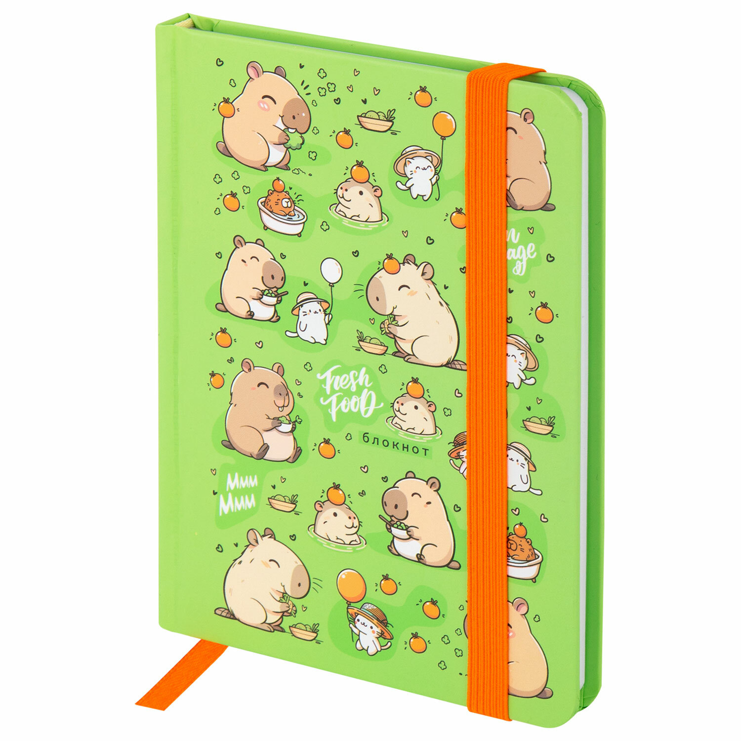 Блокнот с резинкой в клетку 96 л., МАЛЫЙ ФОРМАТ А6, 109х148 мм, твердая обложка, ЮНЛАНДИЯ, "Капибары" Код товара: 116337 280,17 ₽ Купить Производитель:ЮНЛАНДИЯ Яркий блокнот ЮНЛАНДИЯ для записей и заметок с практичной твердой обложкой с матовой ламинацией. Резинка-фиксатор надёжно защищает листы от замятия. Твердая обложка блокнота с матовым покрытием имеет закругленные углы и резинку-фиксатор, благодаря чему листы надёжно защищены от замятия. 96 листов в клетку (5х5 мм) позволяют зафиксировать большой объем информации. Внутренний блок выполнен из офсета белого цвета плотностью 60 г/м2 и крепится к обложке с помощью книжного переплета. Формат блокнота А6 (109х148 мм) позволит владельцу поместить его в портфель или сумку малых габаритов.Производство: КитайФормат: А6Количество листов: 96Обложка: твердый переплетТип спецэффектов на обложке: матовая ламинацияВнутренний блок: офсетПлотность внутреннего блока: 60 г/м2Серия: 7БЦ с резинкойДизайн: КапибарыЦвет внутреннего блока: белыйЛиновка блока: клеткаКрепление блока: книжный переплетШирина: 109 ммДлина: 148 ммЦвет обложки: с рисункомИндивидуальная упаковка: даВес: 141 грРазмер упаковки: 1.3 × 15 × 11.1 смОбъём: 0.0003 м3Промежуточная упаковка: 60 штТранспортная упаковка: 60 штШтрих-код: 4606224443966 Сертификат-1.jpg Сертификат-2.jpg Сертификат-3.jpg