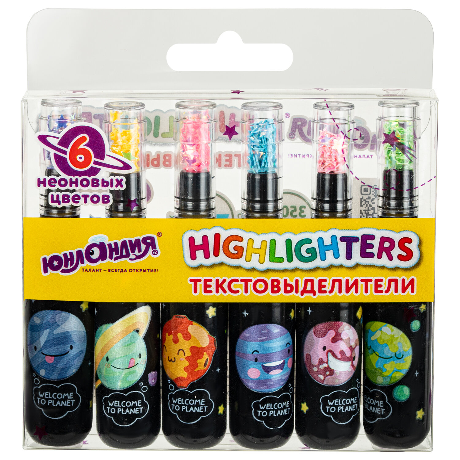 Набор текстовыделителей 6 НЕОНОВЫХ ЦВЕТОВ, ЮНЛАНДИЯ "КОСМОС", линия 1-5 мм Код товара: 152512 243,26 ₽ Купить Производитель:ЮНЛАНДИЯ Текстовыделители ЮНЛАНДИЯ "КОСМОС" предназначены для выделения текста на бумаге любого типа. Идеально подходят для скетчинга, а также решения учебных, домашних и офисных задач. В наборе 6 неоновых цветов: розовый, оранжевый, фиолетовый, желтый, синий и зеленый. Неоновые цвета позволяют ярко выделить важные места в тексте. Цвет колпачка текстовыделителя соответствует цвету чернил. Текстовыделители имеют круглую форму корпуса с диаметром 16 мм. Скошенный наконечник с толщиной линии письма от 1 до 5 мм обеспечивает удобство при работе с текстом, напечатанным мелким шрифтом, или таблицами. Благодаря особой водной основе чернил текстовыделители не высыхают без колпачка в течение 8 часов. Текстовыделители обладают экономным расходом чернил, при этом длина линии письма достигает 350 м. Чернила быстро впитываются и тем самым предотвращают размазывание в процессе использования.Производство: КитайЦвет чернил: неоновый ассортиКоличество в комплекте: 6 шт.Форма наконечника: скошенныйСпецэффект цвета чернил : неоновыйОснова чернил: воднаяСерия: ФигурныеМин. толщина линии письма: 1 ммМакс. толщина линии письма: 5 ммФорма корпуса: круглаяДиаметр корпуса: 17 ммУпаковка: пластиковая упаковка с европодвесомСрок годности: 60 месВес: 64 грРазмер упаковки: 1.8 × 9.7 × 10.3 смОбъём: 0.0002 м3Промежуточная упаковка: 48 штТранспортная упаковка: 288 штШтрих-код: 4606224410982 Сертификат-1.jpg Сертификат-2.jpg Сертификат-3.jpg