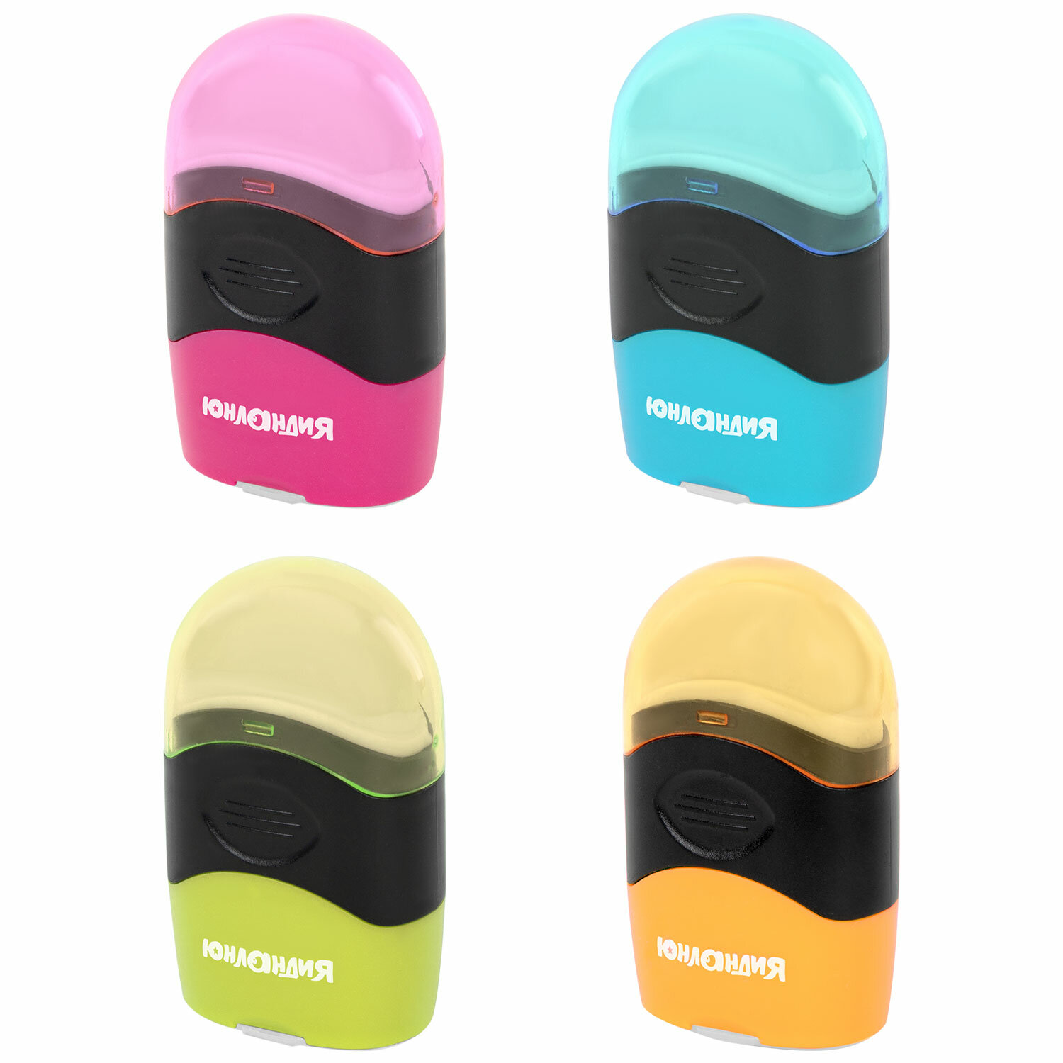 Точилка с контейнером и ластиком ЮНЛАНДИЯ "ДВА В ОДНОМ", яркие цвета ассорти Код товара: 272510 92,96 ₽ Купить Производитель:ЮНЛАНДИЯ Точилка ЮНЛАНДИЯ "ДВА В ОДНОМ" – надежный помощник в учебе и творчестве. Точилка для карандашей ЮНЛАНДИЯ "ДВА В ОДНОМ" с одним отверстием предназначена для заточки карандашей диаметром не более 8 мм. Подходит для стандартных карандашей, изготовленных из пластика и древесины. Благодаря эргономичной форме и специальным зонам для пальцев в средней части корпуса точилку удобно держать в руке. Острое стальное лезвие продуманной конструкции упрощает процесс затачивания, сводя риск поломки грифеля к нулю. Ластик закрыт защитной крышкой, предохраняющей его от загрязнения. Съемный контейнер позволяет с легкостью избавиться от стружки. Поставляется в четырех ярких цветах ассорти (выбор цвета не предусмотрен). Точилки размещены в картонном дисплее по 24 шт. Размер – 62х32х25 мм.Производство: КитайКоличество в комплекте: 1 шт.Материал корпуса: пластикФорма корпуса: овальнаяКоличество отверстий: 1Контейнер для стружки: даСерия: ЮНЛАНДИЯ 2 в 1Подходит для левшей: даЦвет: ассортиВысота: 62 ммШирина: 25 ммГлубина: 32 ммУпаковка : картонный дисплейВес: 32 грРазмер упаковки: 2.5 × 6.1 × 3.7 смОбъём: 0.0001 м3Промежуточная упаковка: 24 штТранспортная упаковка: 576 штШтрих-код: 4606224438900 Сертификат-1.jpg Сертификат-2.jpg Сертификат-3.jpg