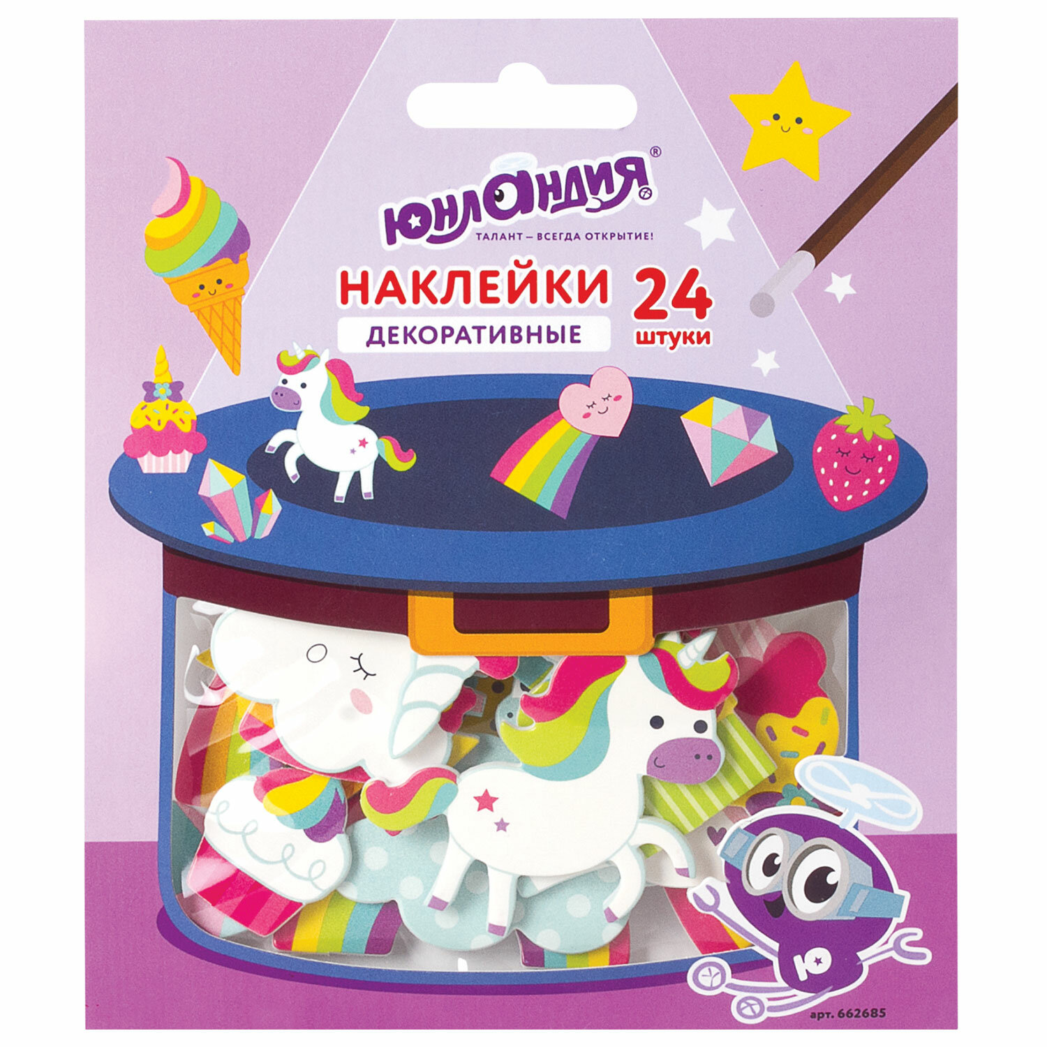 Наклейки из EVA "Единорог и радуга", 24 штуки, ассорти, ЮНЛАНДИЯ Код товара: 662685 215,23 ₽ Купить Производитель:ЮНЛАНДИЯ Наклейки ЮНЛАНДИЯ - это простой и яркий способ украсить любые изделия. Многоразовые наклейки подходят для использования на бумаге, картоне, дереве, пластике, стекле и других поверхностях несколько раз, не оставляя следов. В наборе содержится 24 объёмных наклейки из мягкого пластика (ЭВА) в виде единорогов, радуги, облаков. Наклейки отличаются высочайшим качеством печати и цветопередачи. Стильные и яркие, они украсят тетрадь, дневник, блокнот с записями и любые поделки! Наклейки упакованы в пакет, помещенный внутрь стильного картонного рукава с окошком. На обратной стороне картонной упаковки размещены все дизайны, входящие в набор. Качественный клеевой слой позволяет приклеивать и отклеивать наклейки несколько раз, не оставляя следов на поверхности. При этом каждый раз наклейка надёжно фиксируется и продолжает долго радовать своей красотой.Производство: КитайТип наклеек: ЭВАСерия: ЭВАТематика: сказочные персонажиКоличество наклеек: 24 шт.Тип поверхности наклеивания: любаяОбъемные: даМногократное переклеивание без потери качества: даМатериал: полимерыВозрастная группа: от 3 летПол ребенка: универсальныйУпаковка: картонный рукавВес: 36 грРазмер упаковки: 1.1 × 14.9 × 12.6 смОбъём: 0.0004 м3Промежуточная упаковка: 12 штТранспортная упаковка: 144 штШтрих-код: 4606224272917 Сертификат-1.jpg Сертификат-2.jpg Сертификат-3.jpg