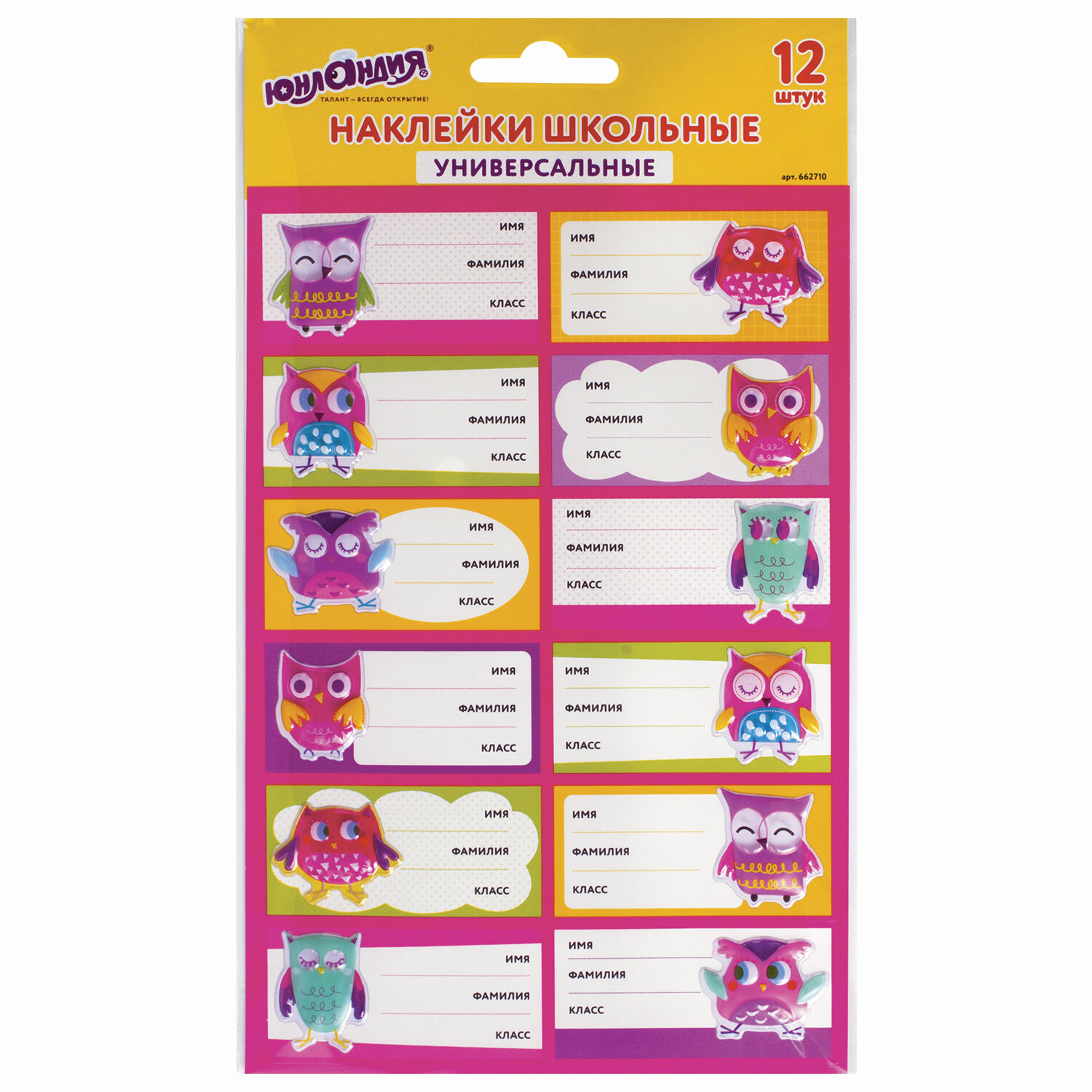 Наклейки для маркировки школьных принадлежностей "Совы", 12 штук, 14х21 см, ЮНЛАНДИЯ Код товара: 662710 122,04 ₽ Купить Производитель:ЮНЛАНДИЯ Наклейки для маркировки школьных принадлежностей ЮНЛАНДИЯ созданы для маркировки тетрадей, дневников, учебников, альбомов для рисования и других вещей школьника, а также для их украшения. В наборе содержится 12 бумажных наклеек с объёмными элементами из мягкого пластика. На каждой наклейке предусмотрены линейки, на которых школьник может указать своё имя, фамилию и класс. Школьные наклейки - это не только удобный, но ещё и красивый способ индивидуализировать вещи ученика. Качественный клеевой слой обеспечивает надежную фиксацию на бумаге, картоне и пластике, это значит, что такую наклейку можно разместить как на тетради и альбоме для рисования, так и на пластиковых обложках для учебников и даже упаковке красок.Производство: КитайТип наклеек: для маркировкиСерия: ШкольныеТематика: птицыКоличество наклеек: 12 шт.Тип поверхности наклеивания: бумага/картон/пластикДлина листа: 140 ммШирина листа: 210 ммМатериал: бумага самоклеящаяся, полимерыВозрастная группа: от 3 летПол ребенка: универсальныйУпаковка: пакет с европодвесомВес: 28 грРазмер упаковки: 0.3 × 25 × 14.3 смОбъём: 0.0001 м3Промежуточная упаковка: 48 штТранспортная упаковка: 288 штШтрих-код: 4606224273167 Сертификат-1.jpg Сертификат-2.jpg Сертификат-3.jpg