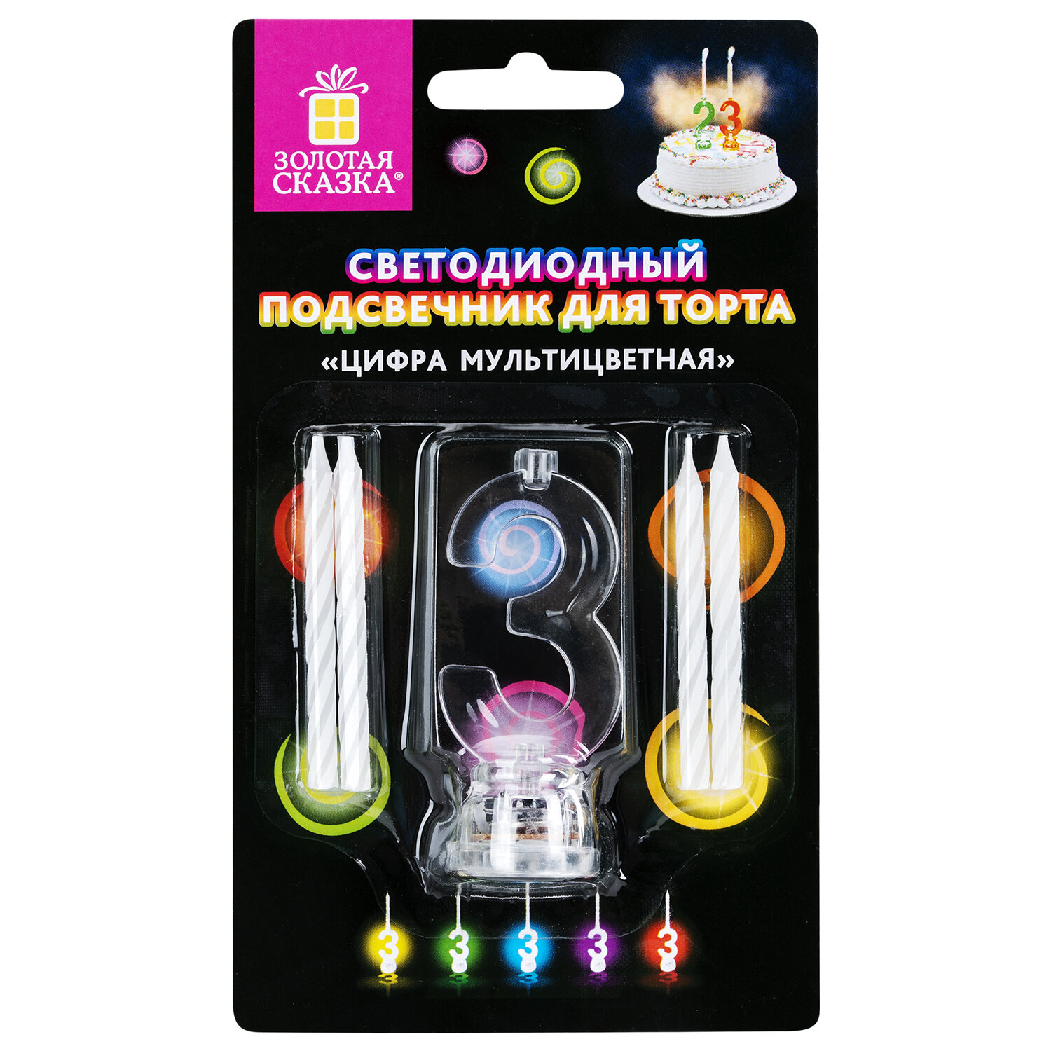 Цифра-подсвечник "3" светодиодная, ЗОЛОТАЯ СКАЗКА, в наборе 4 свечи 6 см, 1 батарейка Ликвидация Код товара: 591426 44,33 ₽ Купить Производитель:ЗОЛОТАЯ СКАЗКА Свечи для торта являются неотъемлемым атрибутом праздника. Светодиодная цифра-подсвечник для торта ЗОЛОТАЯ СКАЗКА станет прекрасным украшением торта и других кондитерских изделий по случаю дня рождения, юбилея и любого другого торжества. Цифра-подсвечник представляет собой прозрачную цифру "3" на подставке высотой 7 см со встроенным светодиодом. Также в комплект входят аккумулятор CR1220 и 4 парафиновые свечи высотой 6 см. Свеча устанавливается в держатель подсвечника и зажигается, подсвечник включается с помощью силиконового переключателя на дне подставки. Плавная смена цвета происходит автоматически.Производство: КитайТип свечи: подсвечник для торта в комлекте со свечамиКоличество в комплекте: 1 шт.Длина: 70 ммОсобенности: светодиодная цифра-подсвечникФорма: цифраНомер цифры: 3Наличие держателя: даМатериал: полипропиленЦвет: белый/прозрачныйУпаковка: блистер с европодвесомВес: 30 грРазмер упаковки: 2.6 × 17.1 × 9.6 смОбъём: 0.0003 м3Промежуточная упаковка: 6 штТранспортная упаковка: 288 штШтрих-код: 4606224286167 Файлы Сертификат-1.jpg Сертификат-2.jpg Сертификат-3.jpg Сертификат-4.jpg