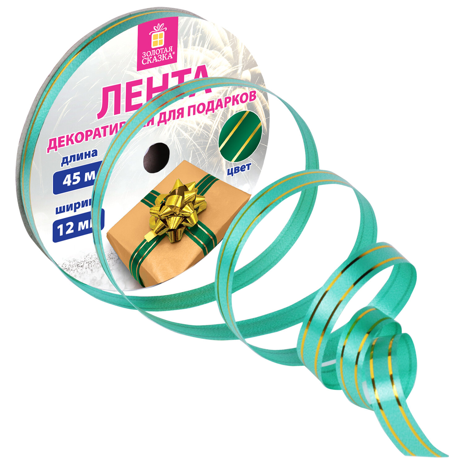 Лента упаковочная декоративная для подарков, золотые полосы, 12 мм х 45 м, зеленая, ЗОЛОТАЯ СКАЗКА Ликвидация Код товара: 591826 44,31 ₽ Купить Производитель:ЗОЛОТАЯ СКАЗКА Лента упаковочная декоративная ЗОЛОТАЯ СКАЗКА предназначена для декорирования подарков, для оформления праздничных композиций, кондитерских наборов. Лента также широко используется во флористике и в рукоделии. Лента шириной 12 мм и длиной 45 м изготовлена из прочного полипропилена (70%) и полиэтилена (15%) и полиэтилентерефталата (15%). Толщина ленты 120 мкм (0,12 мм). Цвет ленты - зеленый с золотистыми полосами. Лента намотана на картонную бабину и упакована в термоусадочную пленку, поверх которой есть стикер с краткой информацией о товаре.Производство: КитайШирина ленты: 12 ммДлина ленты: 45 мКоличество в наборе: 1 шт.Количество цветов: 1Цвет: зеленыйЭффект: металлизированные полосыМатериал: пластикУпаковка: термоусадкаВес: 45 грРазмер упаковки: 1.3 × 10.5 × 10.5 смОбъём: 0.0002 м3Промежуточная упаковка: 50 штТранспортная упаковка: 50 штШтрих-код: 4606224342702 Сертификат-1.jpg Сертификат-2.jpg