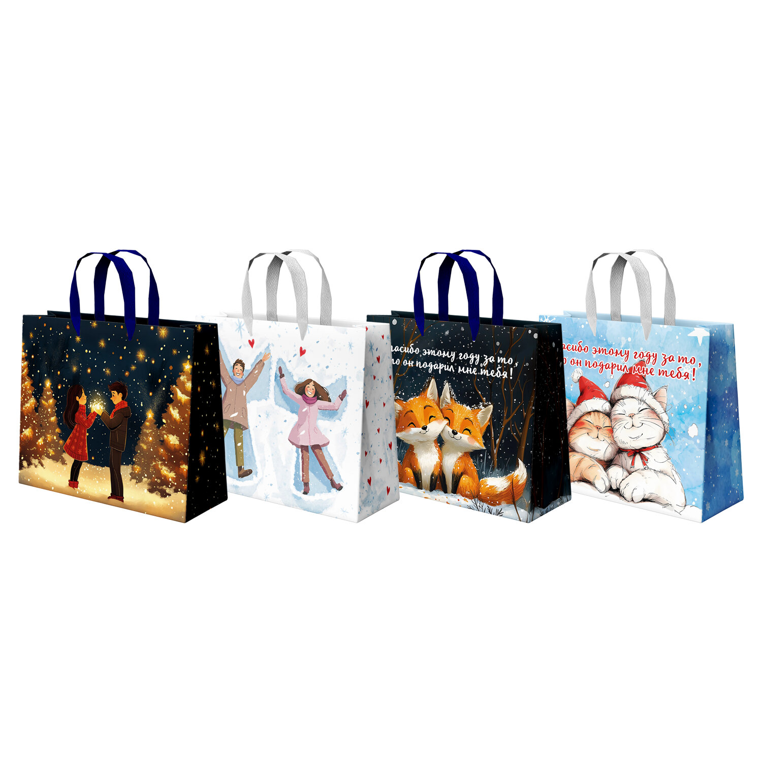 Пакет подарочный (1 шт.) новогодний, 26х13х32 см, "Love story", фольга, ассорти, ЗОЛОТАЯ СКАЗКА Код товара: 592445 82,35 ₽ Купить Производитель:ЗОЛОТАЯ СКАЗКА Подарочный пакет новогодний "Love story" ЗОЛОТАЯ СКАЗКА – отличное решение для упаковки любого презента, которое позволит с легкостью и со вкусом оформить выбранный подарок. Подарочный пакет, как и все виды подарочной упаковки, способен придать особый статус подарку, также он является достаточно практичным изделием, которое может использоваться в повседневной жизни. Пакет изготовлен из из ламинированного мелованного картона, снабжен ленточными ручками из полиэстера. Размер – 26х13х32 см. Пакеты украшены милыми иллюстрациями в зимней тематике, которые создают теплые образы, атмосферу любви и уюта. Такой рисунок добавляет романтическое настроение и делает пакет идеальным не только для Нового года, но и для Дня святого Валентина. С лицевой стороны пакета некоторые детали покрыты тиснением золотистой и серебристой фольгой.Производство: КитайВид пакета: горизонтальныйКоличество в комплекте: 1 шт.Дизайн: Love storyМатериал: мелованный картонЭффект: фольгаС рисунком: даЦвет: ассортиТип: новогоднийРазмер пакета: 26х13х32 смВес: 80 грРазмер упаковки: 1 × 28 × 35 смОбъём: 0.0004 м3Промежуточная упаковка: 12 штТранспортная упаковка: 144 штШтрих-код: 4606224503318 Сертификат-1.jpg Сертификат-2.jpg
